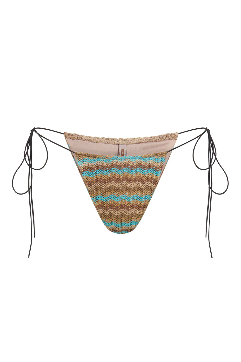 The Allure Bikini Bottoms are crafted from a stripe knitted fabric in a micro fit. Fully lined and detailed with adjustable tie-up sides. combine with the matching bikini top and beach dress to complete the look.