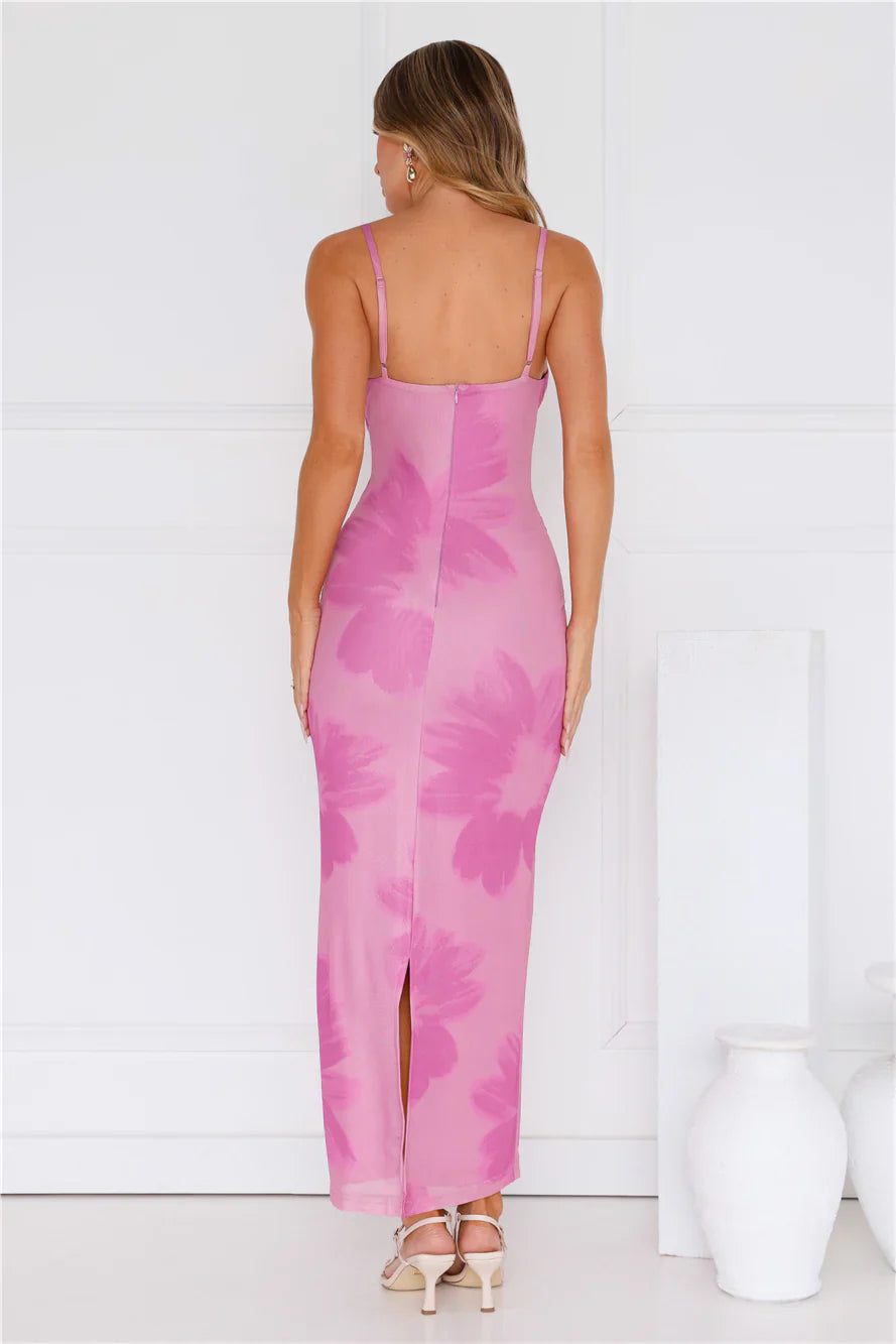 Bring the chic vibes in the Amber Splendour Mesh Maxi Dress. Featuring a bodycon silhouette and a lovely printed design. Style with heels for a party and impress.