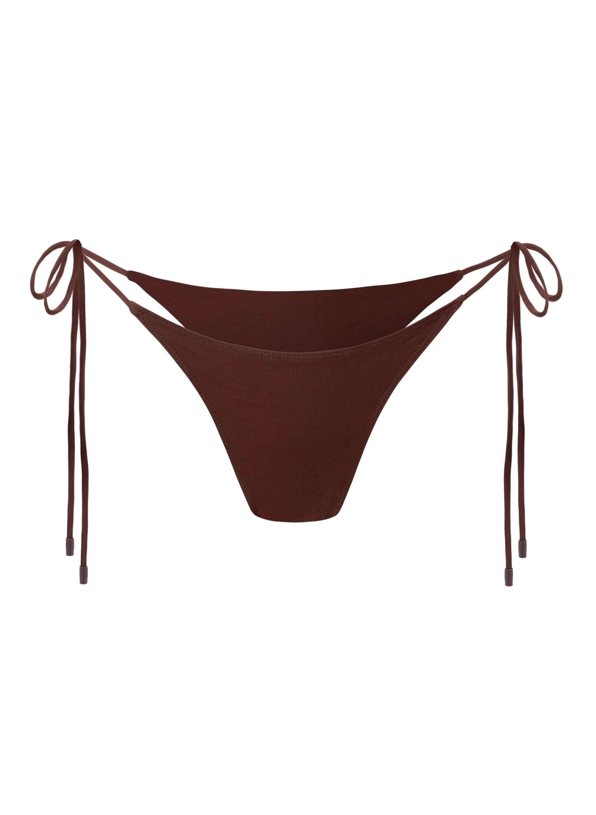 The Amina Bikini Bottom is crafted of sculpting stretch fabric in a chocolate brown hue. This minimal silhouette offers medium coverage with a low rise. This style runs true to size. Shop Swimwear