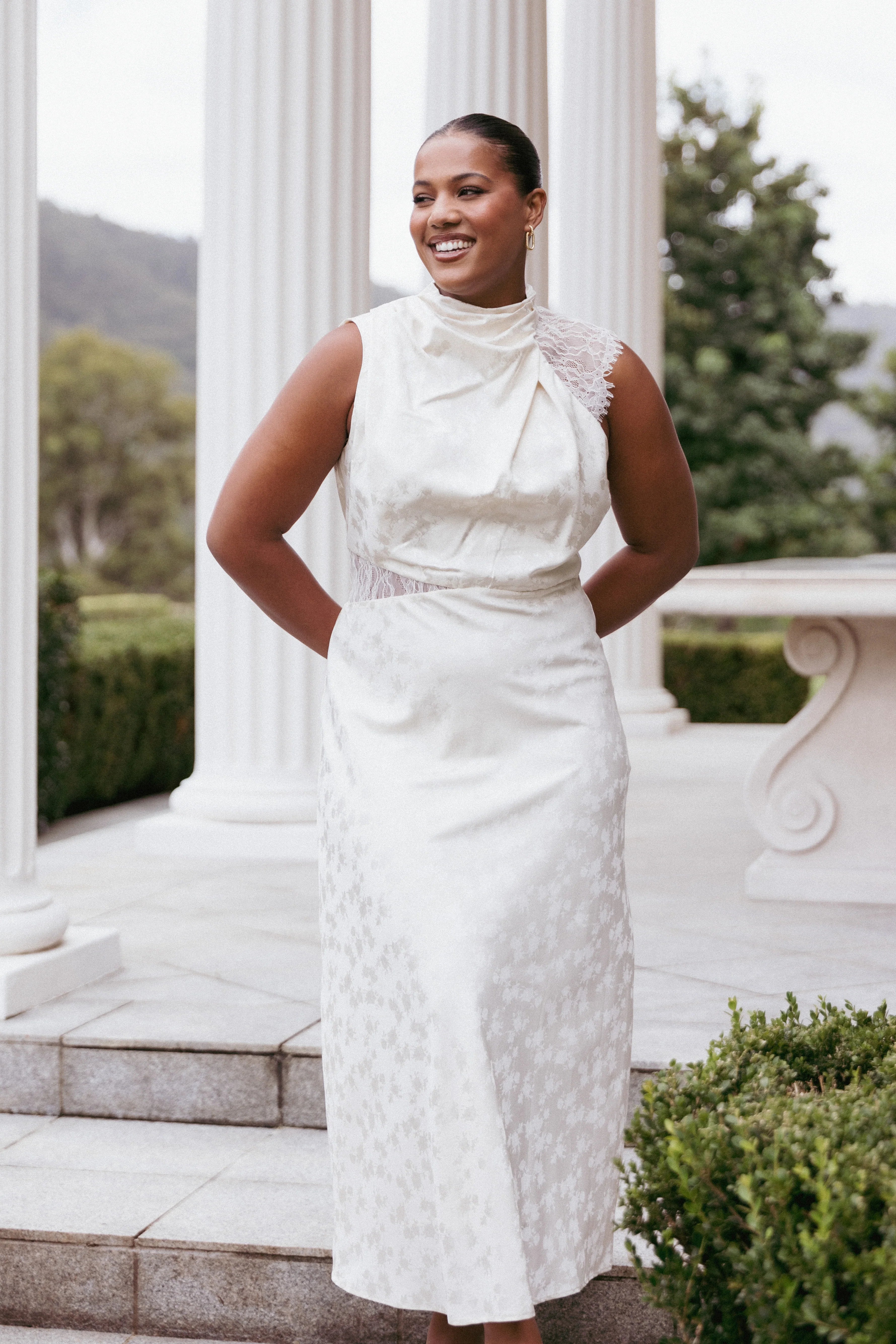 Anabelle Halter Neck Lace Maxi Dress - White