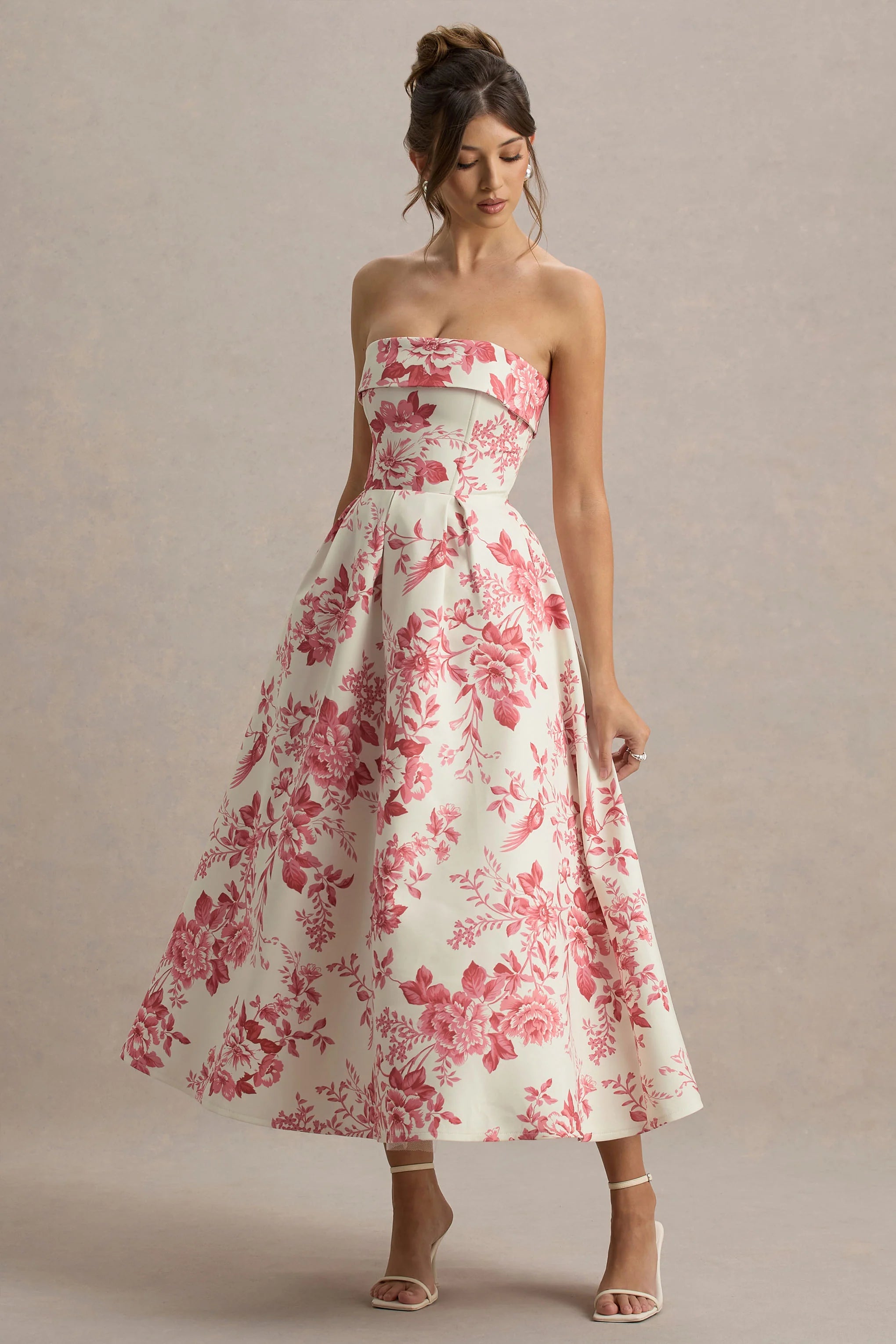 You name the occasion, we have the perfect dress. Crafted in a pink porcelain print of our premium stretch crepe, Annalise effortlessly compliments every skin tone. Beautifully flowing with a cinched in waist, this midi dress boasts a pleated skirt that creates an elegant sense of movement. For a timeless race day look, try styling yours with some simple gold earrings and strappy stilettos.