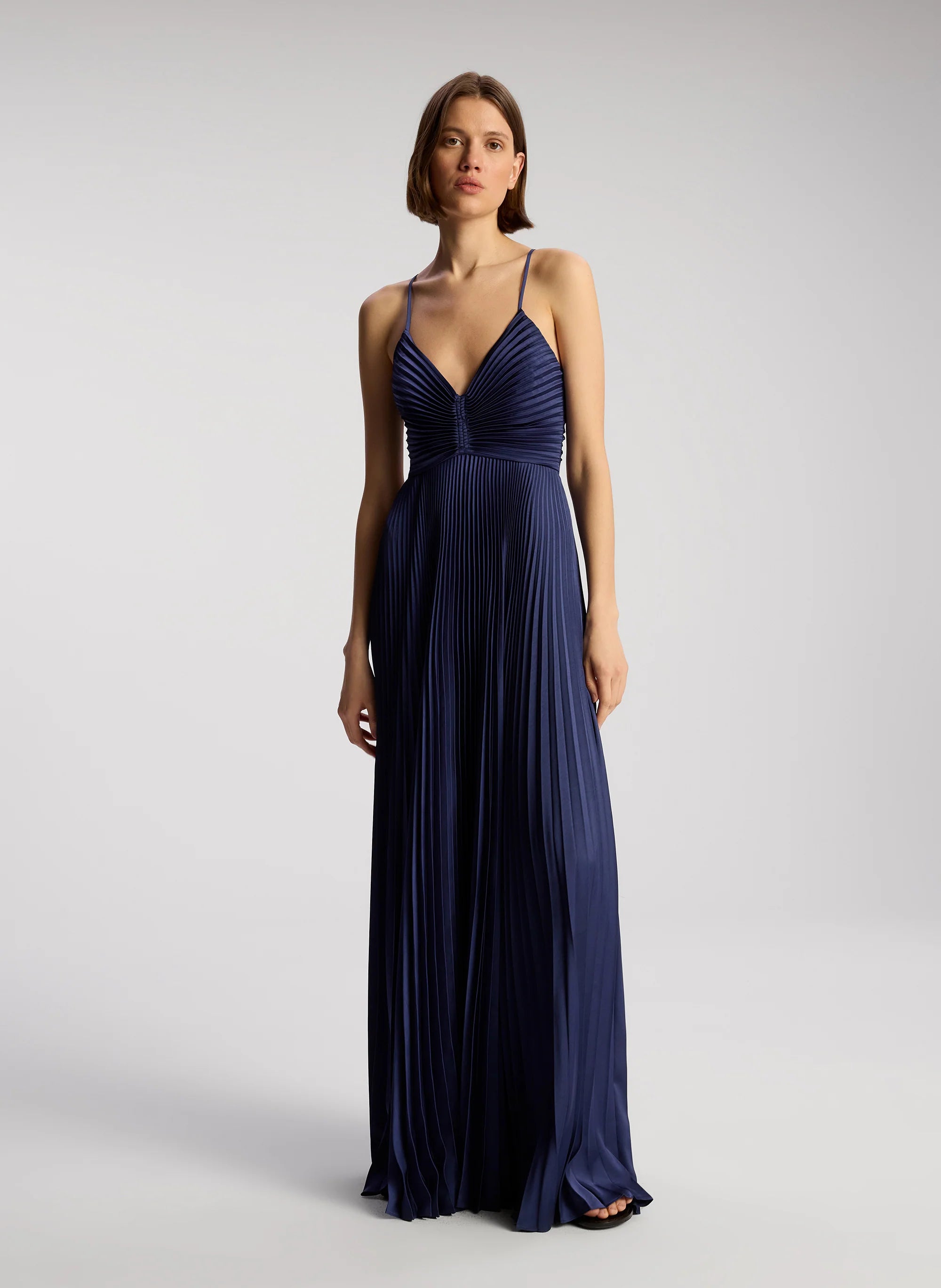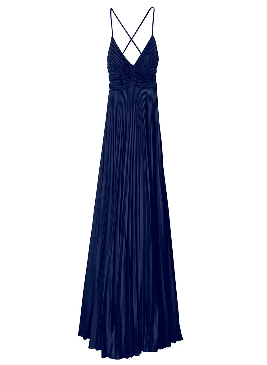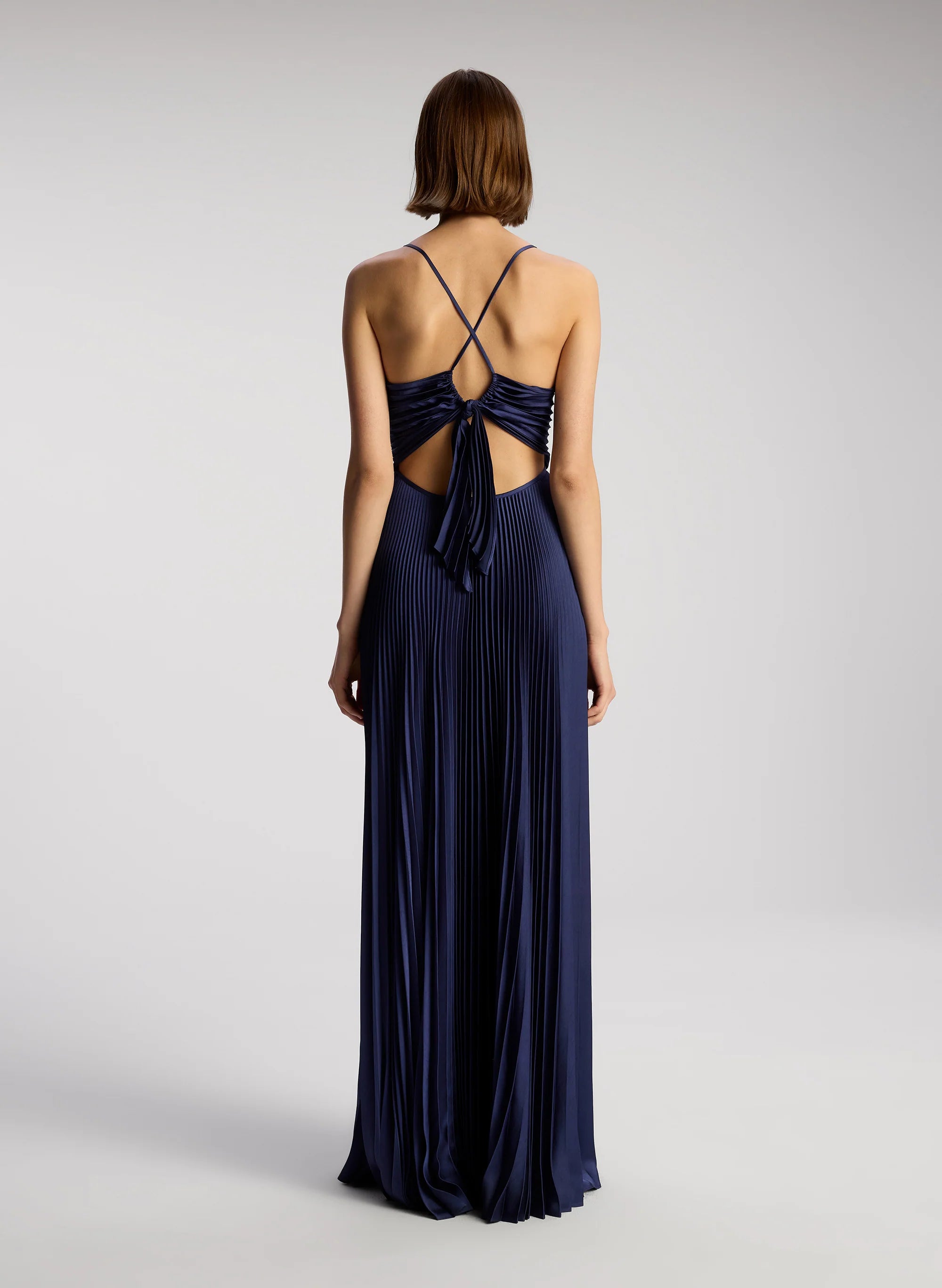 The Aries Dress. a part of A.L.C.'s Signature Collection. is crafted from vintage satin in a captivating blue hue. This maxi silhouette features thin straps that cross in the back atop a cinched cutout secured with ties. This style runs true to size. Shop Dresses