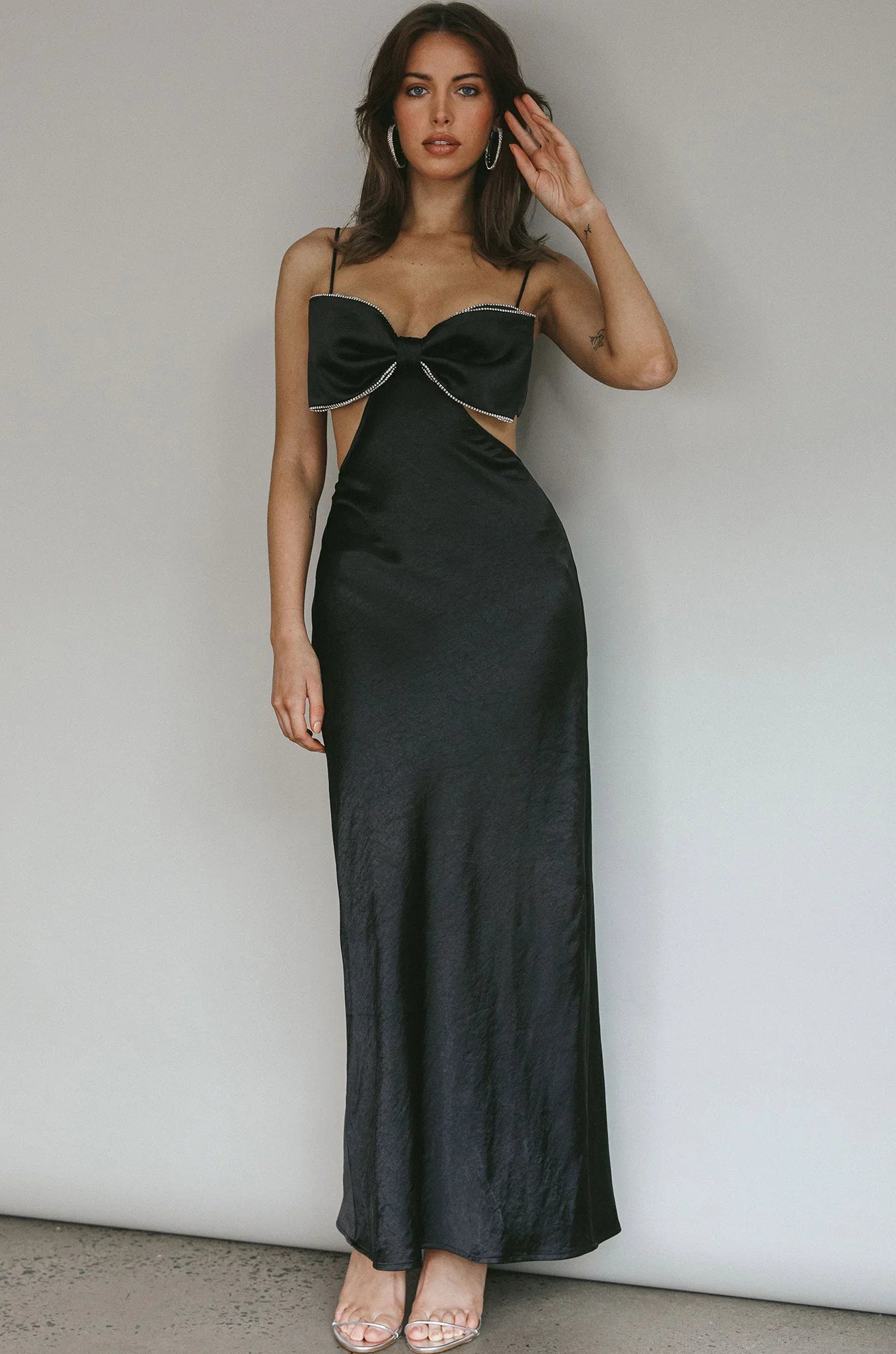 Make an entrance in our gorgeous Aurelia maxi dress. We are obsessed with its diamante-trimmed bow feature in the bust. Perfect for a special birthday celebration teamed with diamante heels and a clutch.