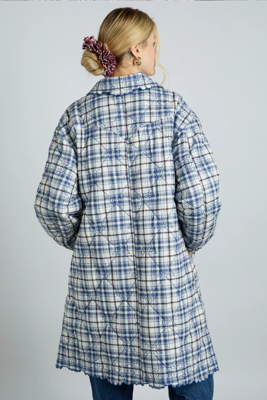 Our much coveted Avery Coat has been refreshed. now available in an embroidered navy check.