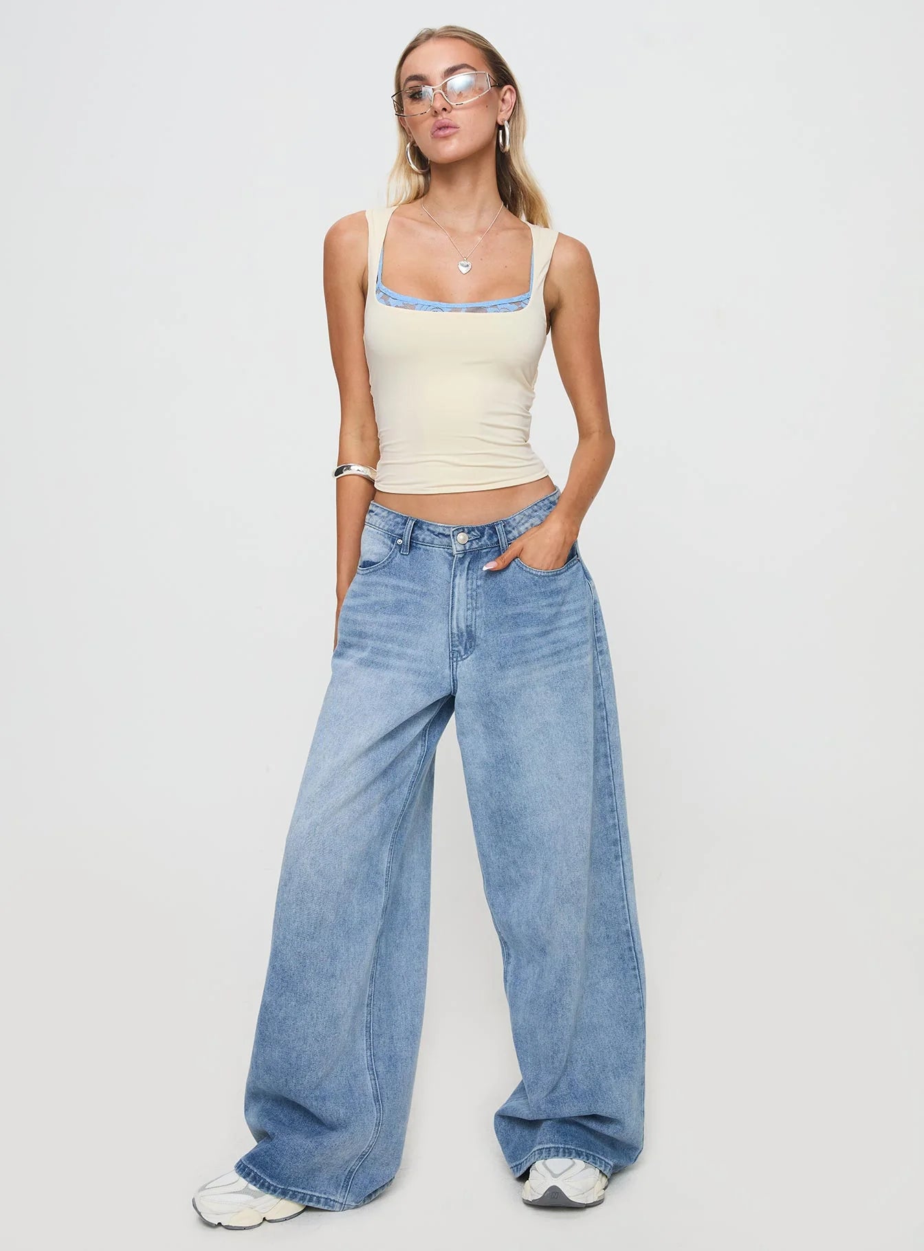 - Contrast lace bust detail, scooped neckline, slim fitting