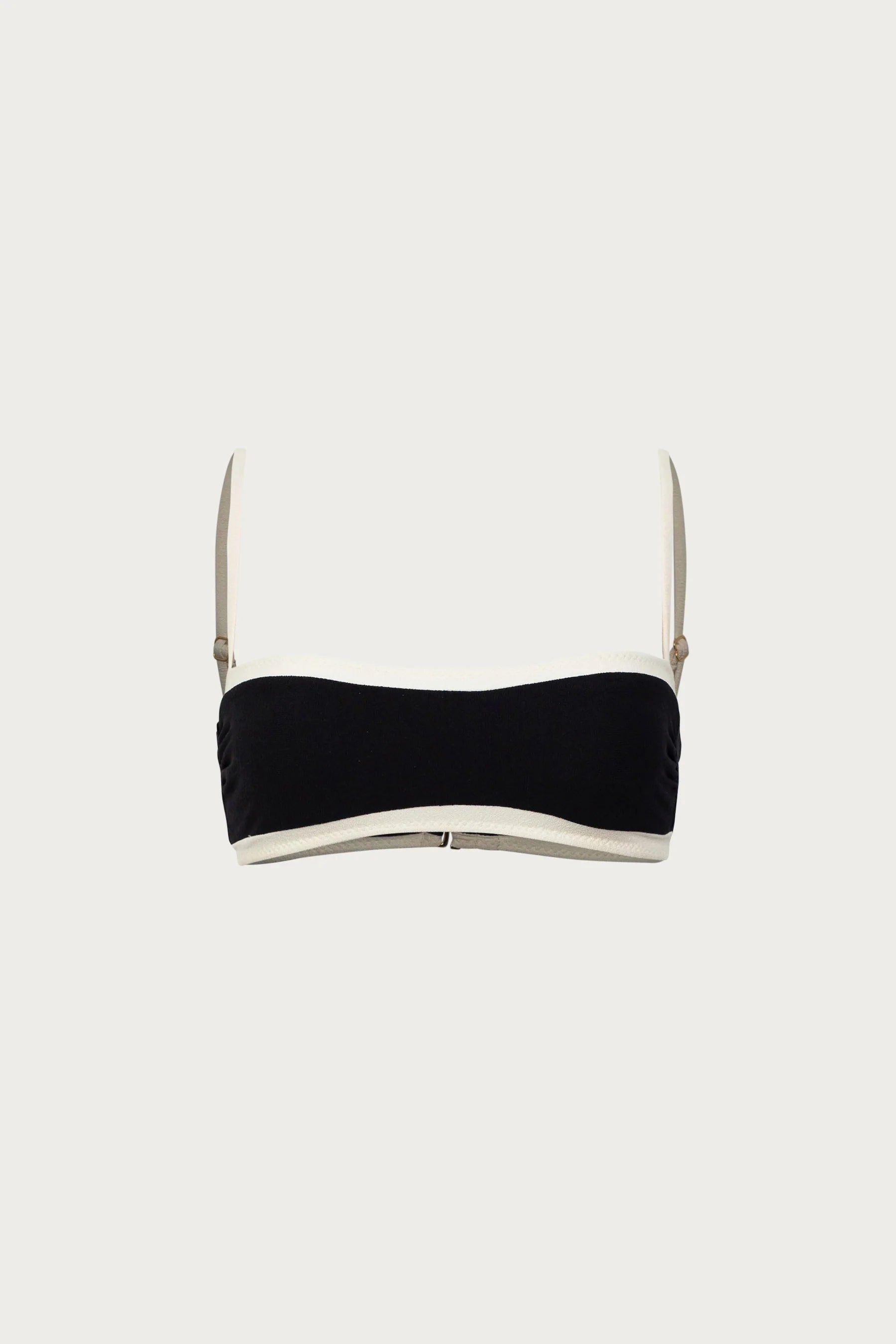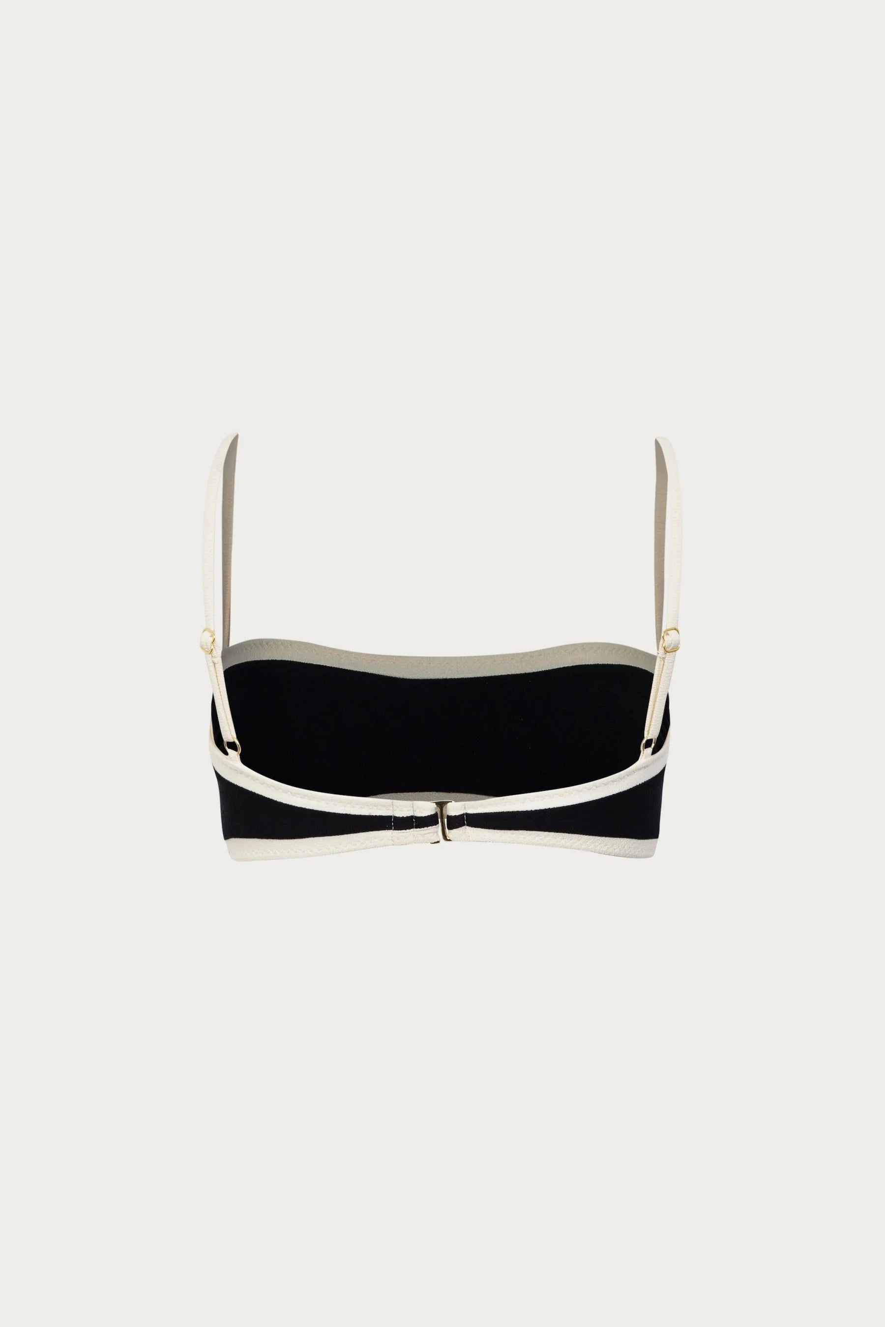 Our Bandeau Top with contrasting binding includes side boning for shape definition and a back hook closure.