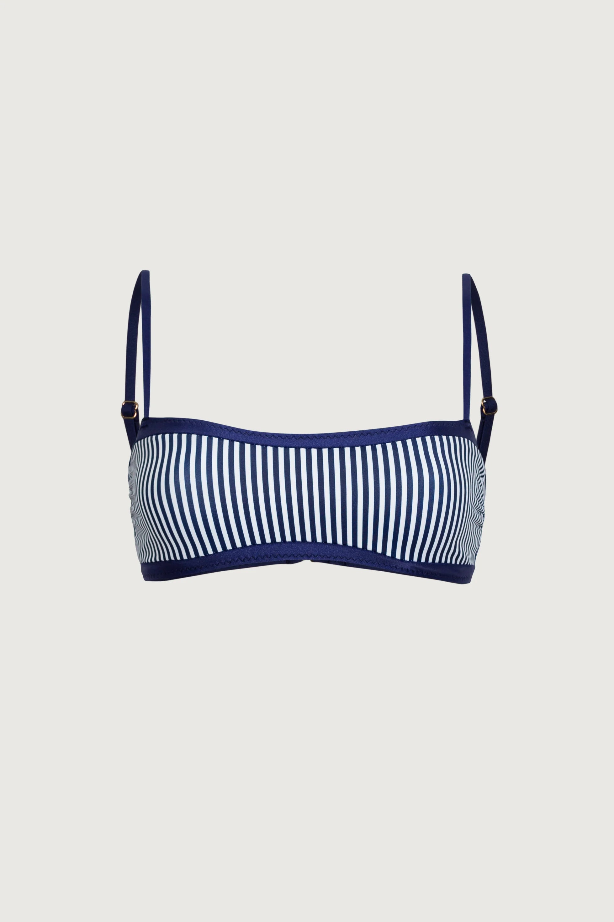 Our Bandeau Top with contrasting binding includes side boning for shape definition and a back hook closure.