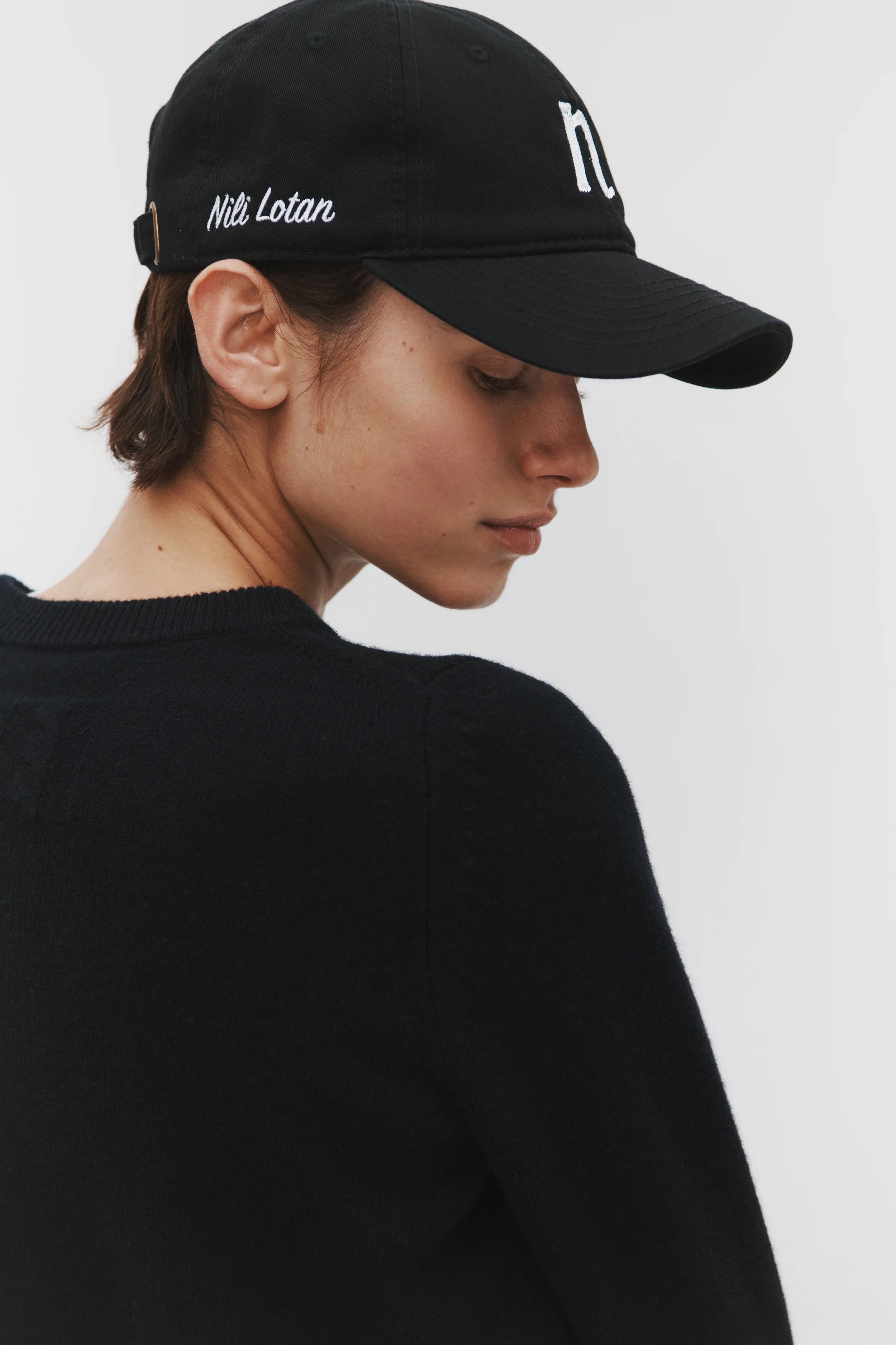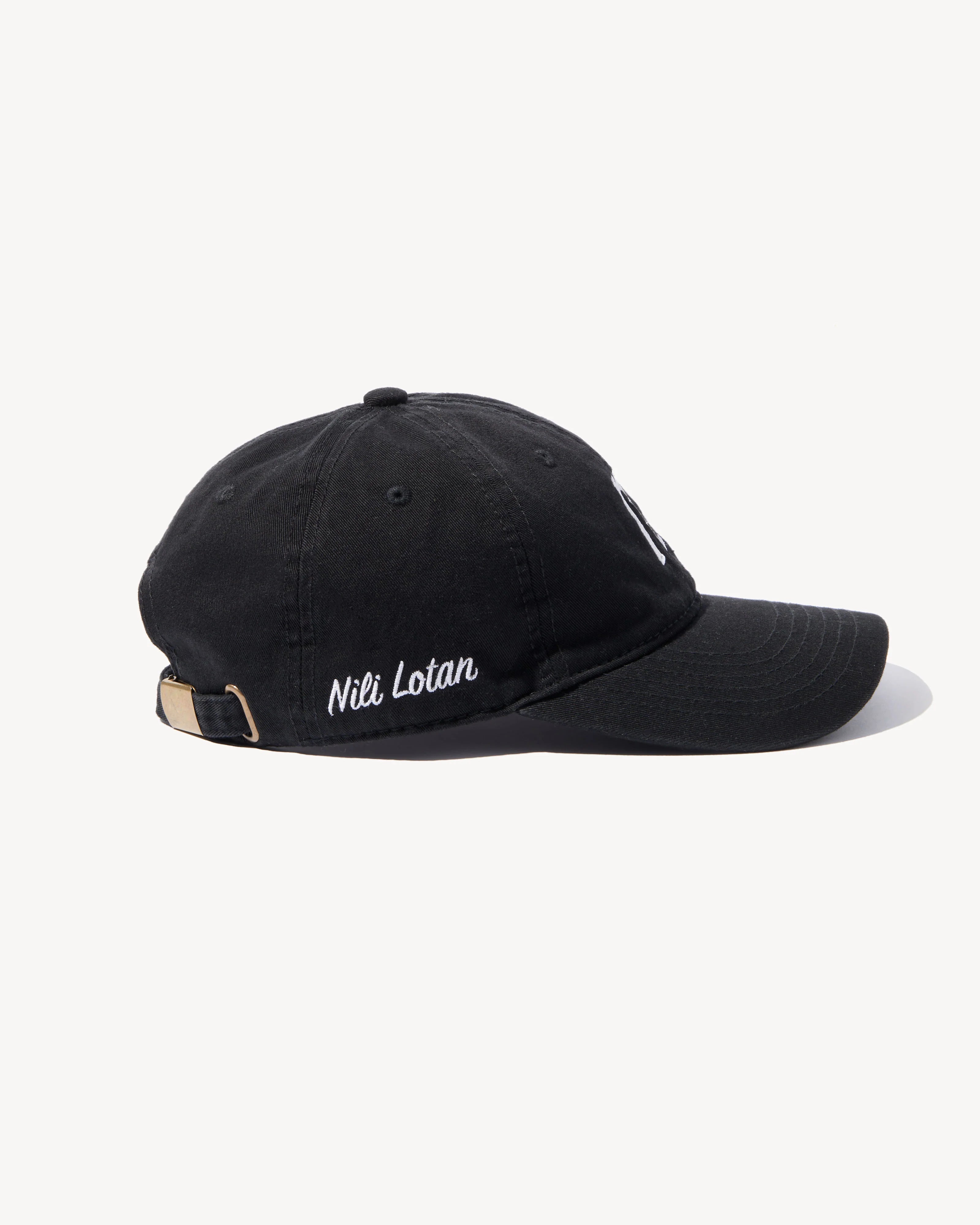 Baseball cap with 'n' initial embroidery. 'Nili Lotan' accent embroidery on black style only.