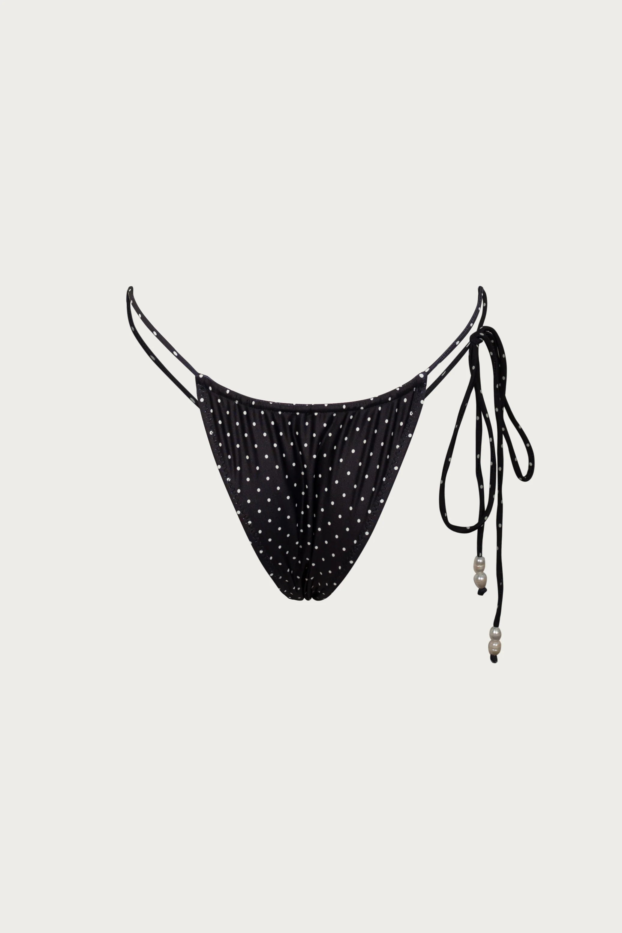 The Beaded String Bottoms with custom beads include extra-long single tie side. Scrunched fit for adjustable coverage.