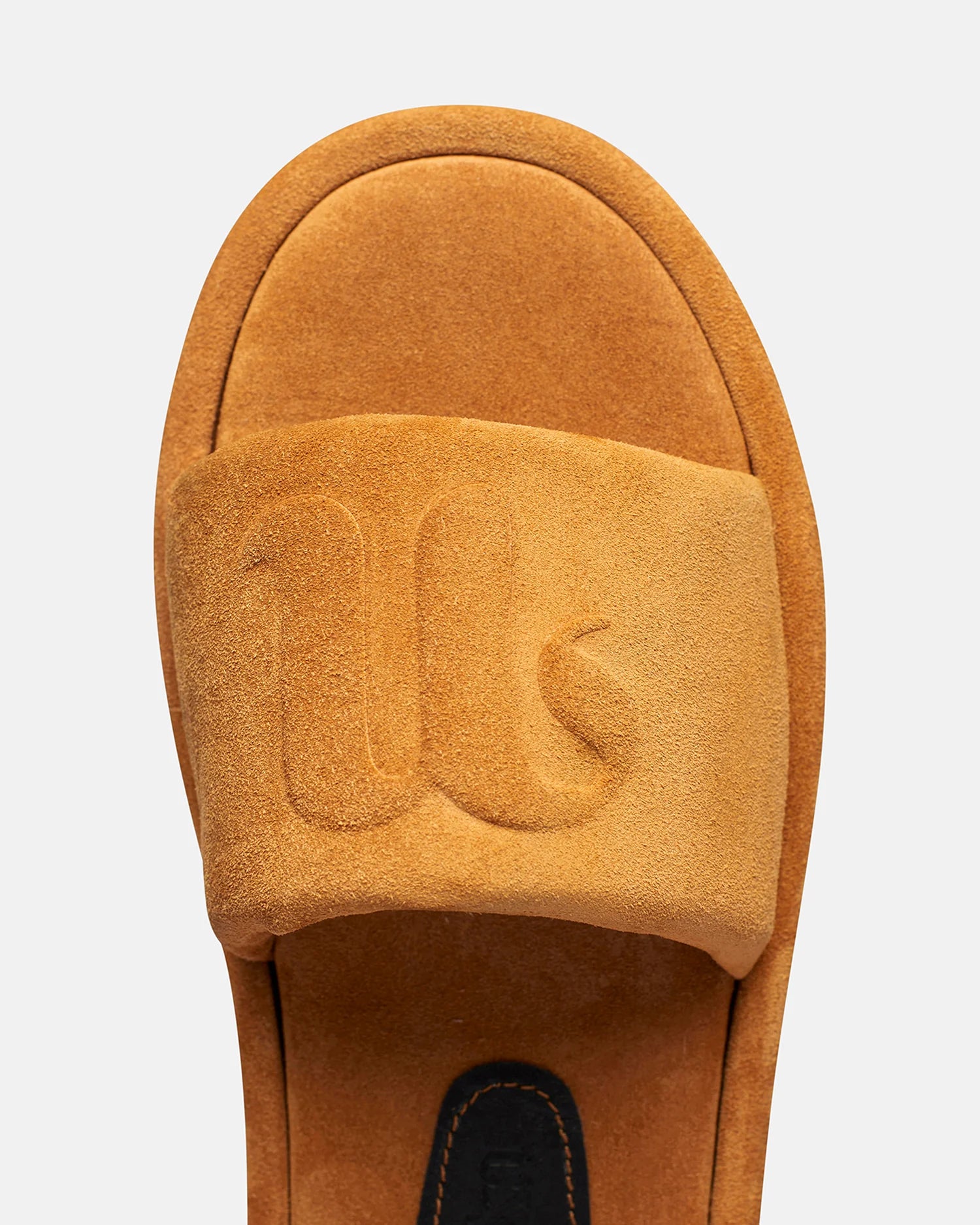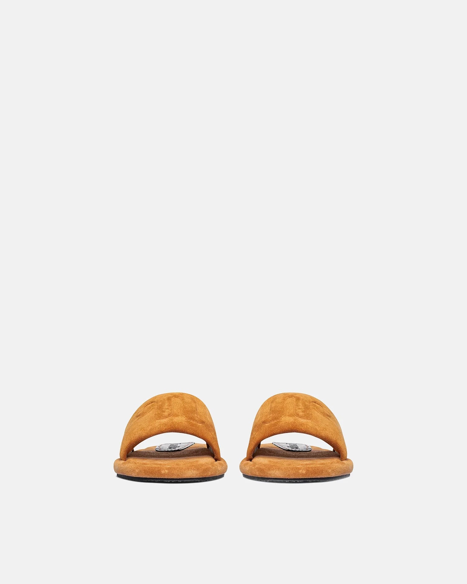 A fresh take on the everyday slide. the Berrington is elevated in supple mustard suede and finished with a signature logo across the front.