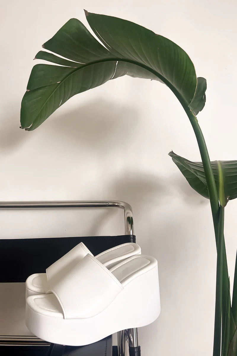 The Blake Platform Slide Sandals are a summer essential! Featuring a thick platform sole and a wide upper vamp to keep your foot in place. Pair these trendy white sandals with the and some for a flirty summer look!