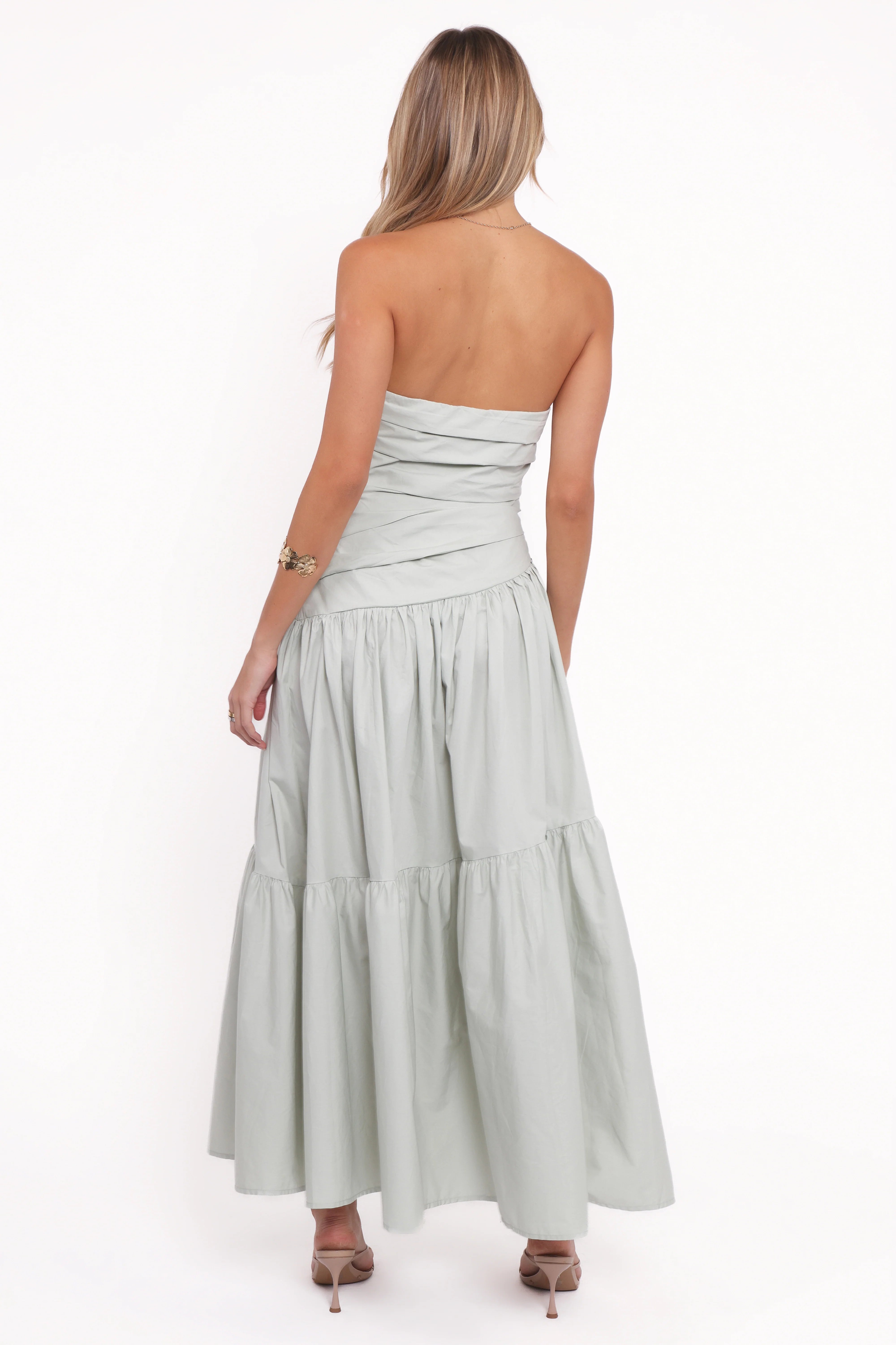 DETAILS Turn heads with effortless elegance in the Blanche Strapless Maxi Dress in Mint. The maxi-length silhouette and strapless design create a timeless, sophisticated look, while the straight neckline is supported by a discreet inner bust rubber grip for a secure and comfortable fit.