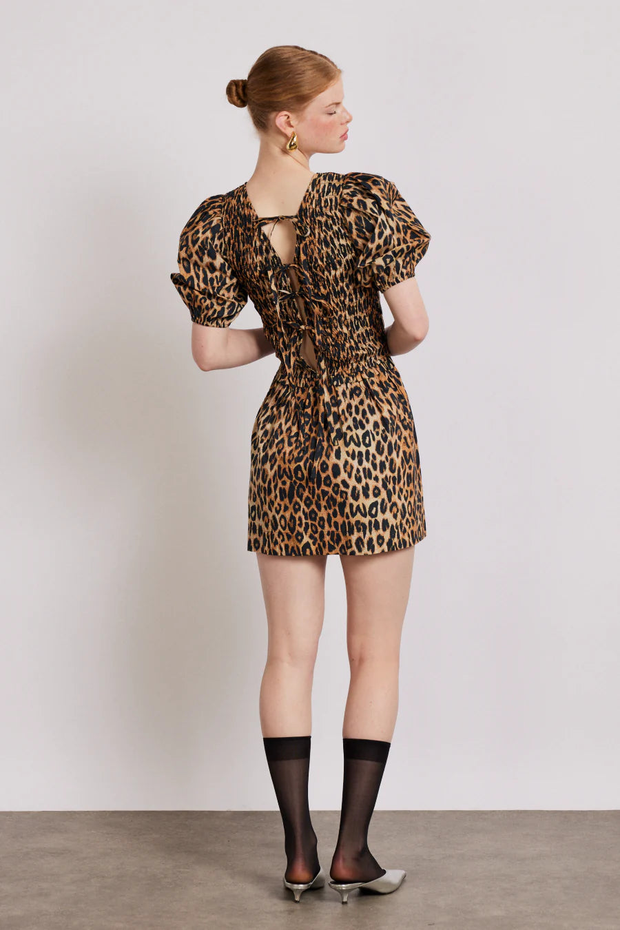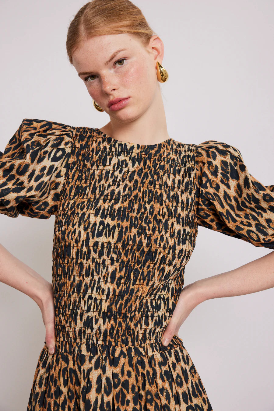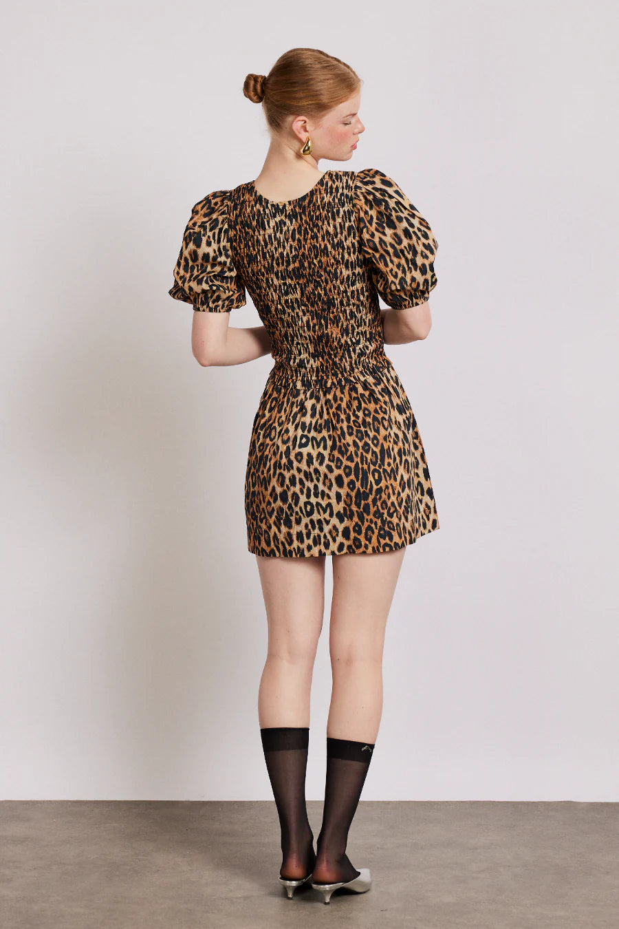 Presenting our best-loved mini; the Bluebelle. This fully reversible dress features puff sleeves and a shirred bodice. now redesigned in our iconic leopard print.