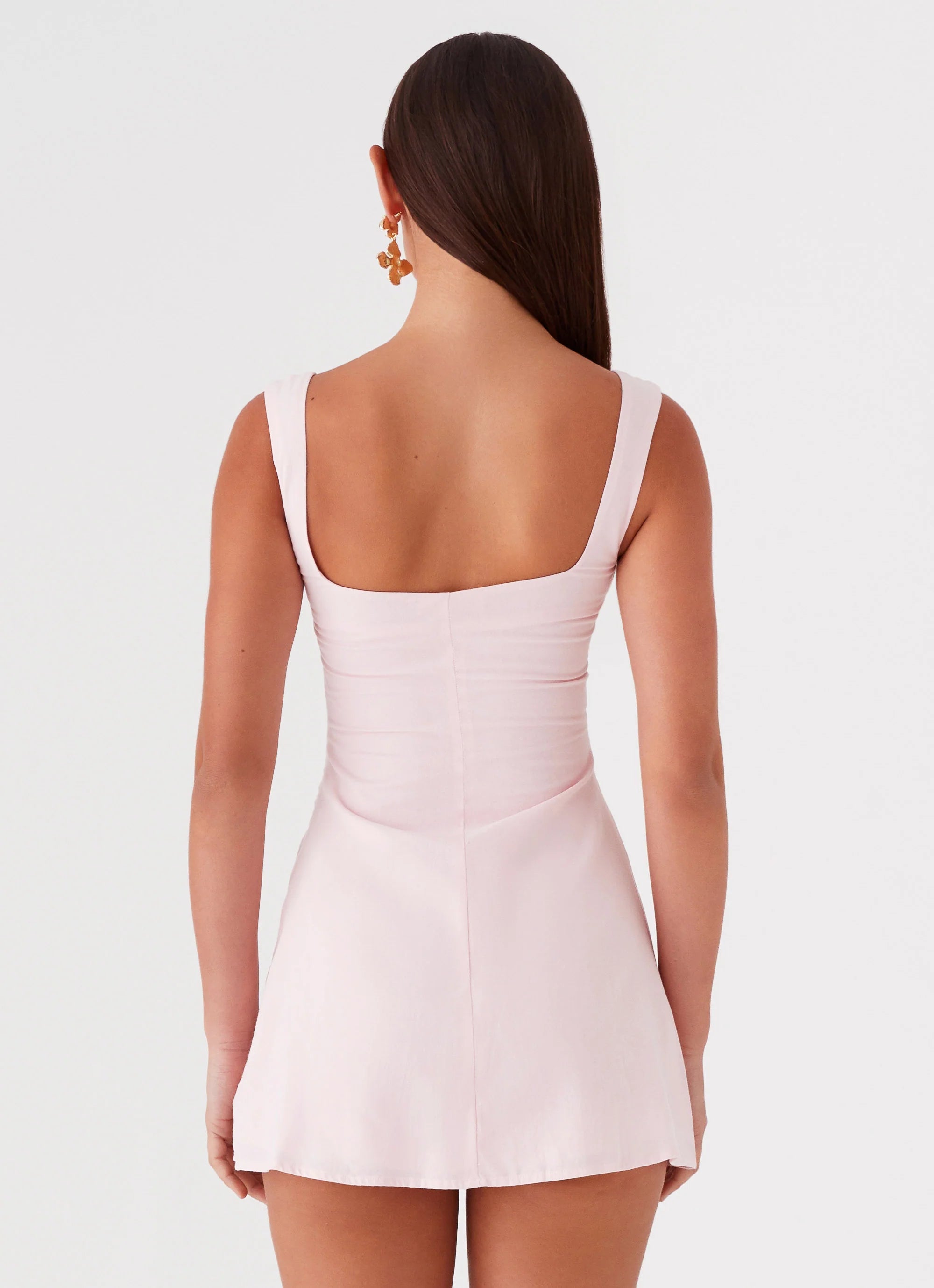 Introducing the Cadence Mini Dress, a charming blend of modern elegance and playful details. This dress features a flattering square neckline, wide straps for comfort, and a delightful bow detail at the front.