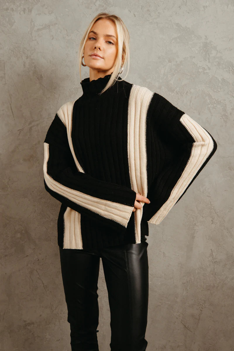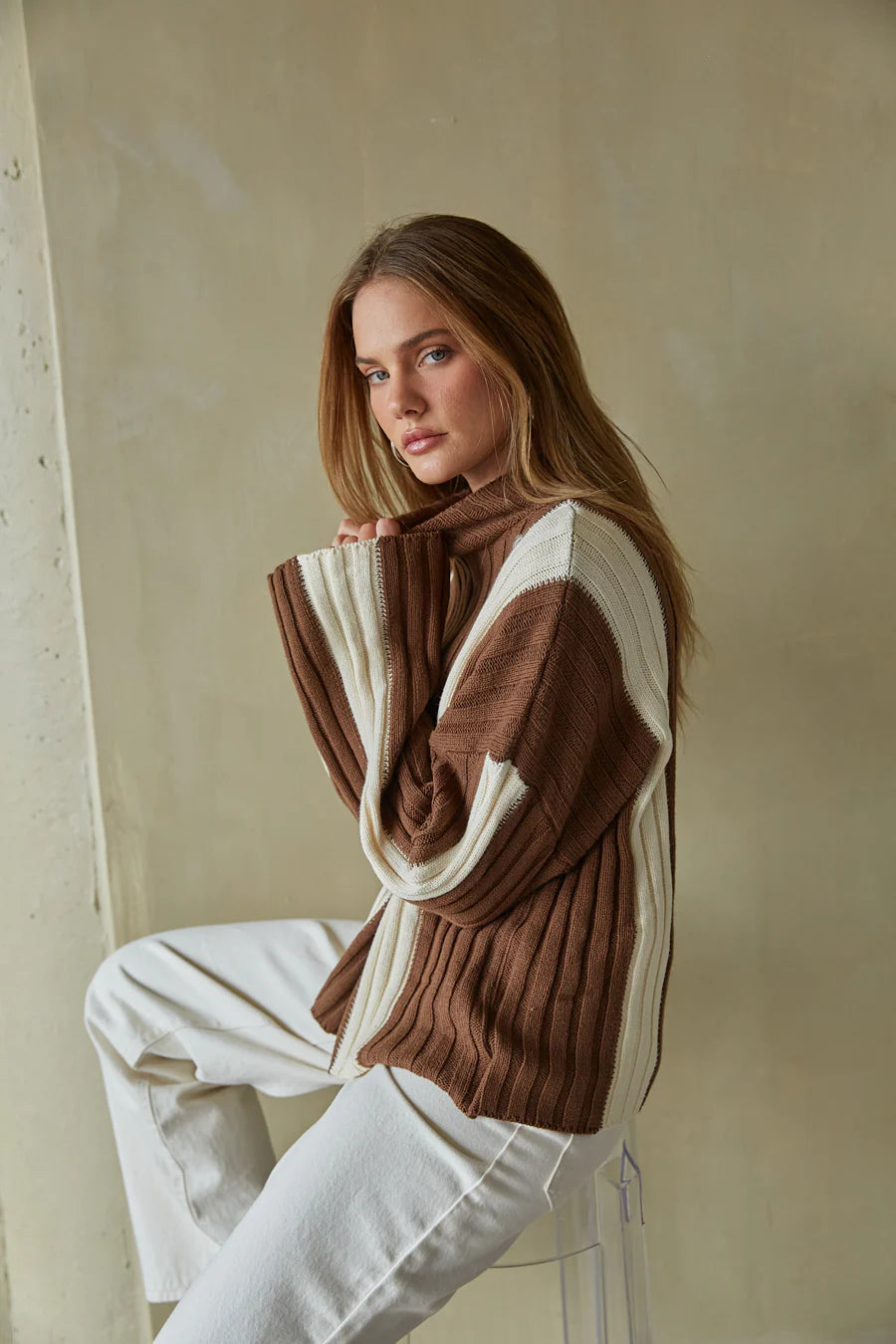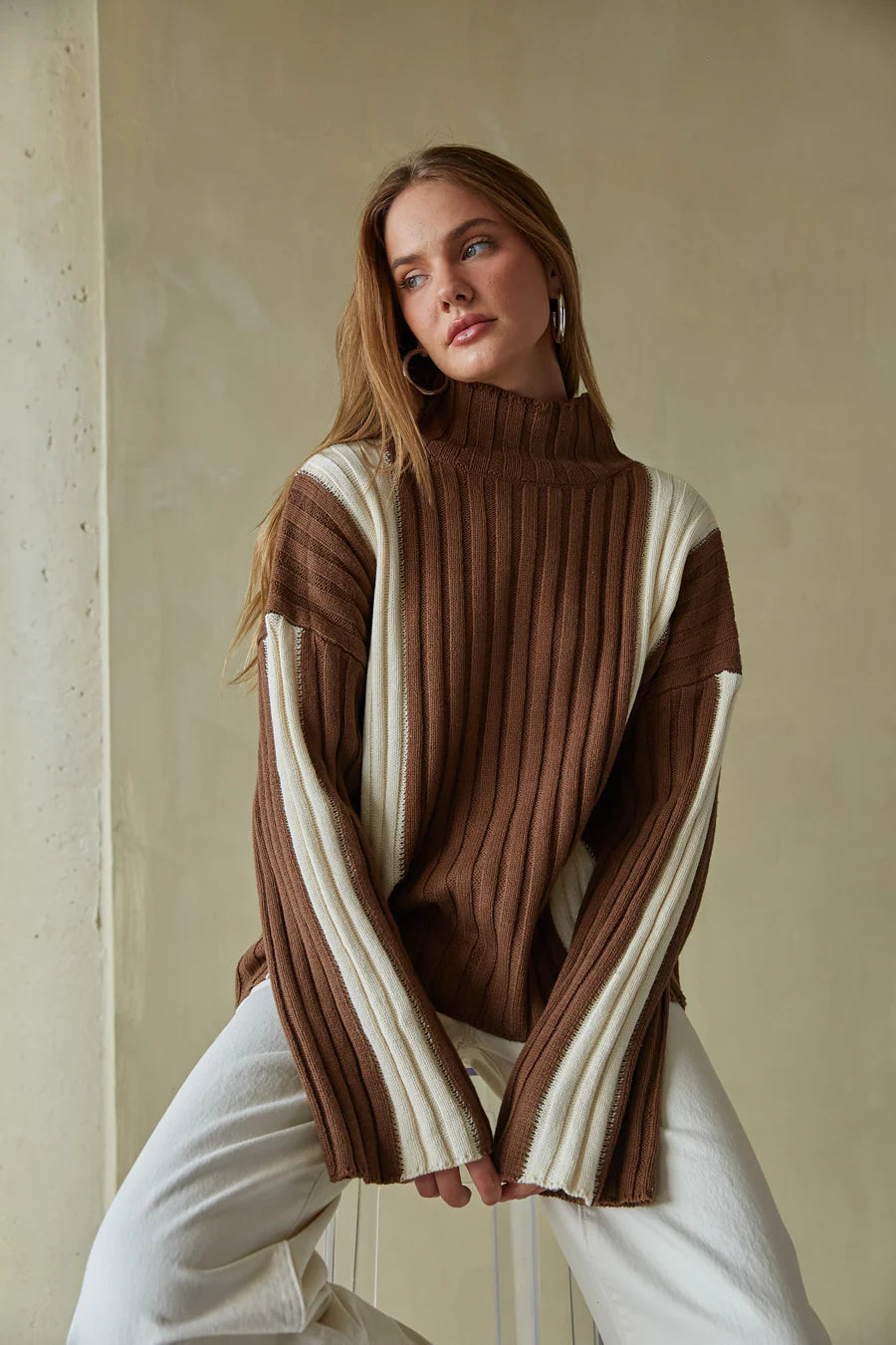 Stay bundled up this season in the Carolina Color Block Sweater! This cozy top is made of a ribbed knit material and features a color block design, mock neck, and long sleeves with drop shoulders. Pair with some to complete the look!