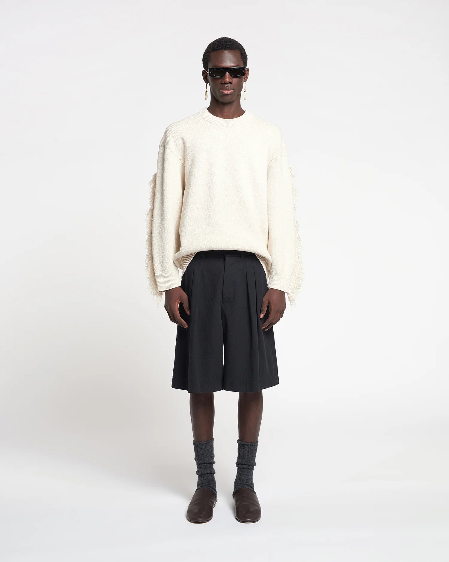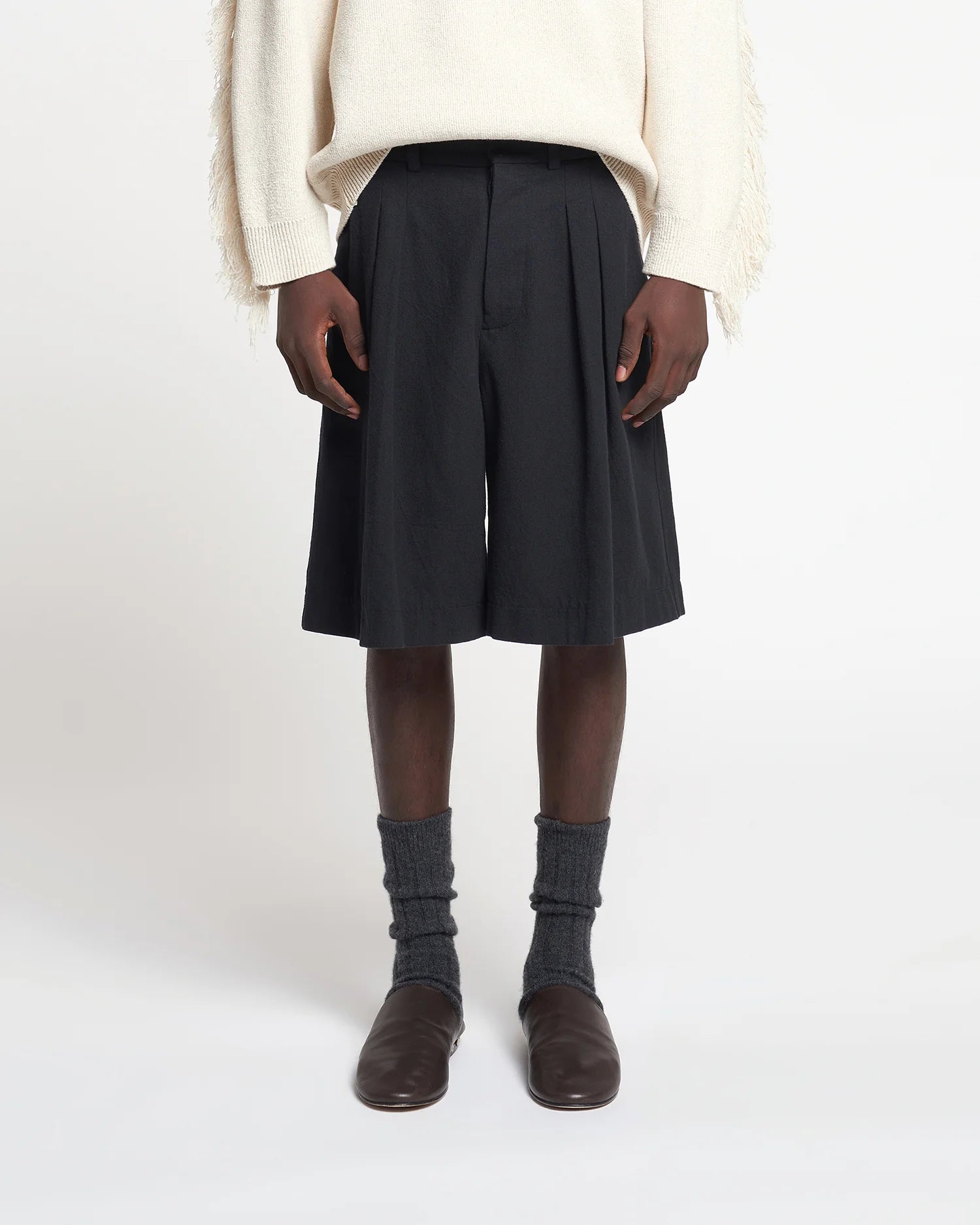 Our design philosophy centres around the elevation of wardrobe foundations. Expertly tailored from soft washed canvas. the Carsten shorts sit high on the waist before falling in a fluid A-line shape. Sharp pressed creases enhance the voluminous silhouette.