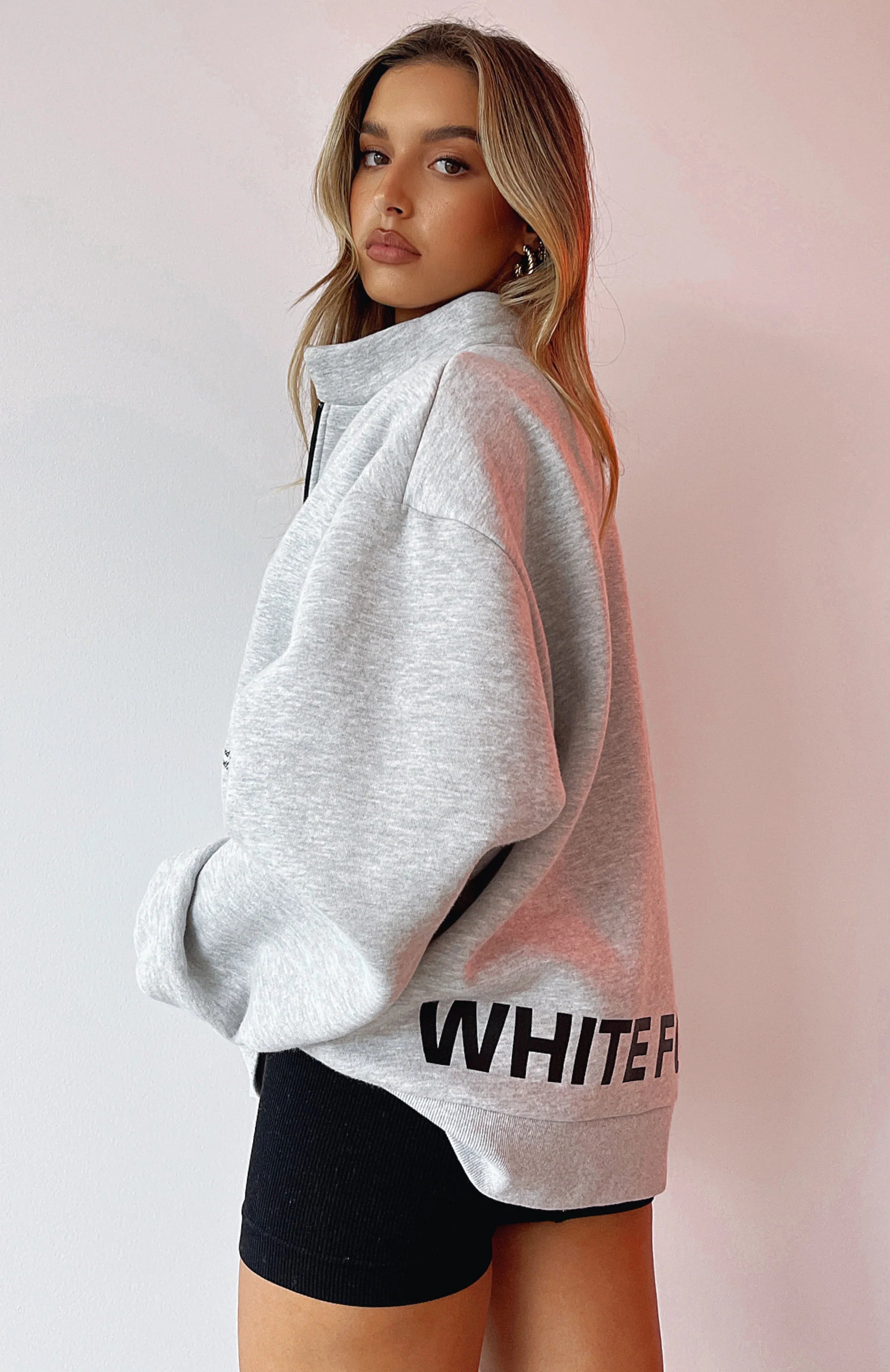 The Caught Up With You Zip Front Sweater in Grey Marle is the perfect comfy addition to any outfit. Featuring a vintage look and feel, zip front, ribbed hemline and cuffs, printed logo and quote on front side and a soft fleece lining for ultimate comfort. Just add bike shorts to complete the look.