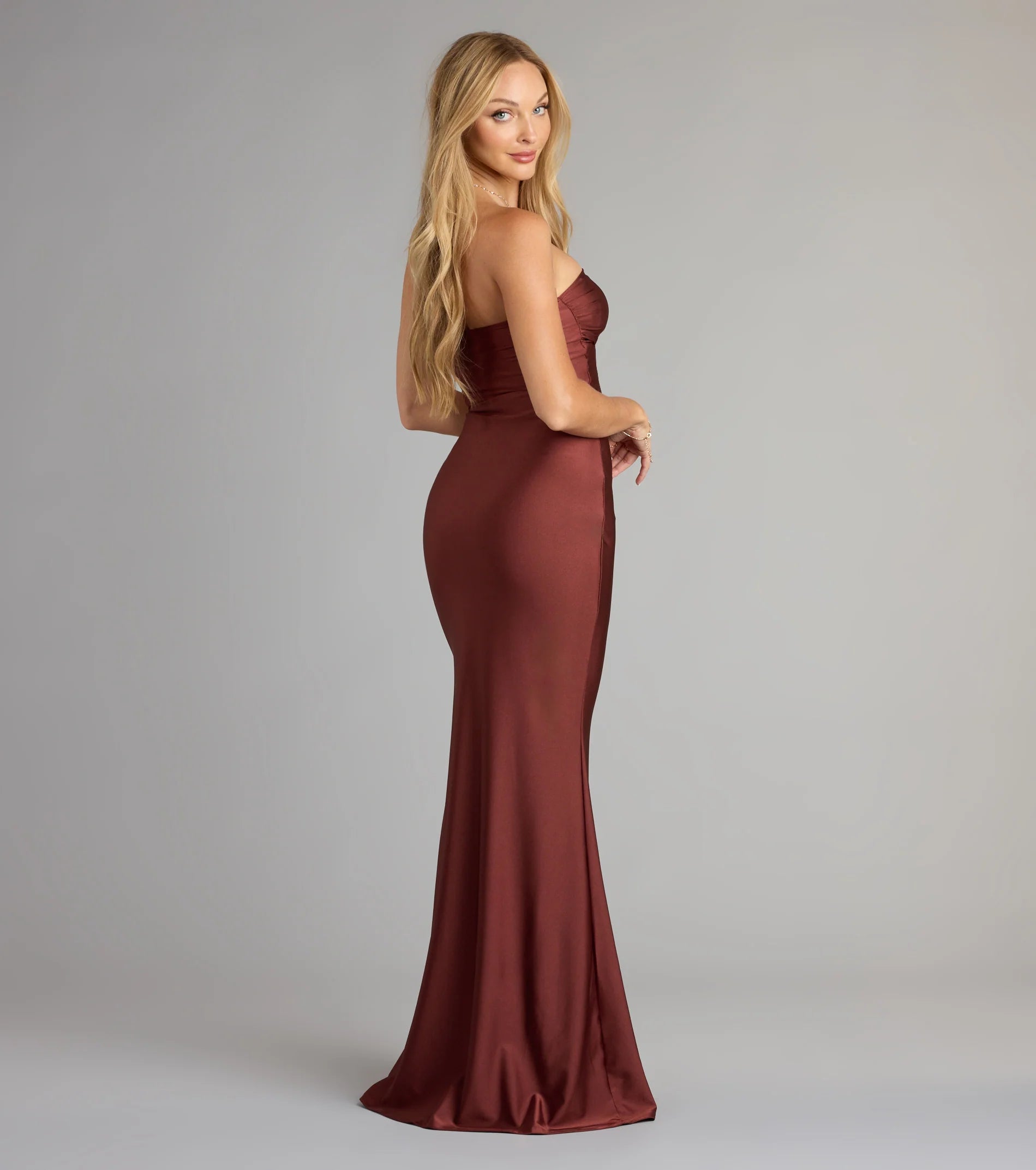 Classy yet modern, the Cheryl strapless formal dress is the epitome of chic with a high slit for movement and a mermaid silhouette that accentuates your figure!