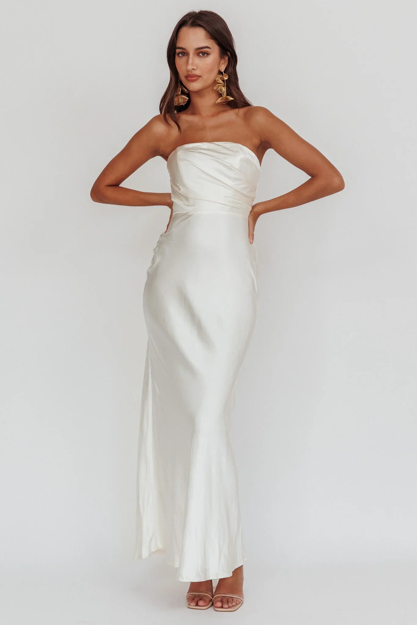 Make your grand entrance in our stunning City Of Stars maxi dress. Featuring a strapless design and soft, satin fabric, it's perfect for your big day or a special gala event. Team it with nude heels and a clutch for an unforgettable look.