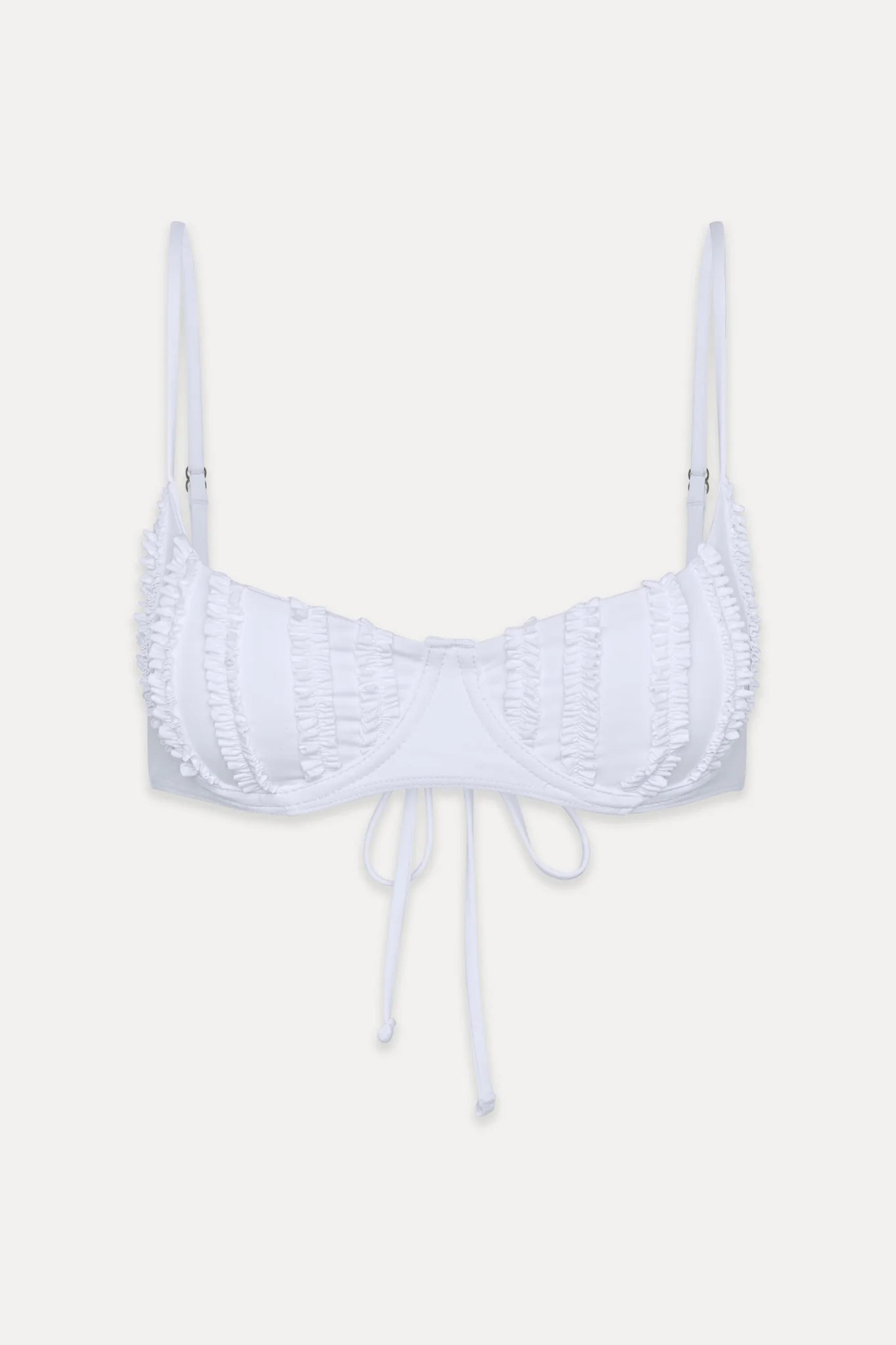 This bralette bikini top will give you the lift you're looking for. The Cola bikini top features new special ruffle trim.