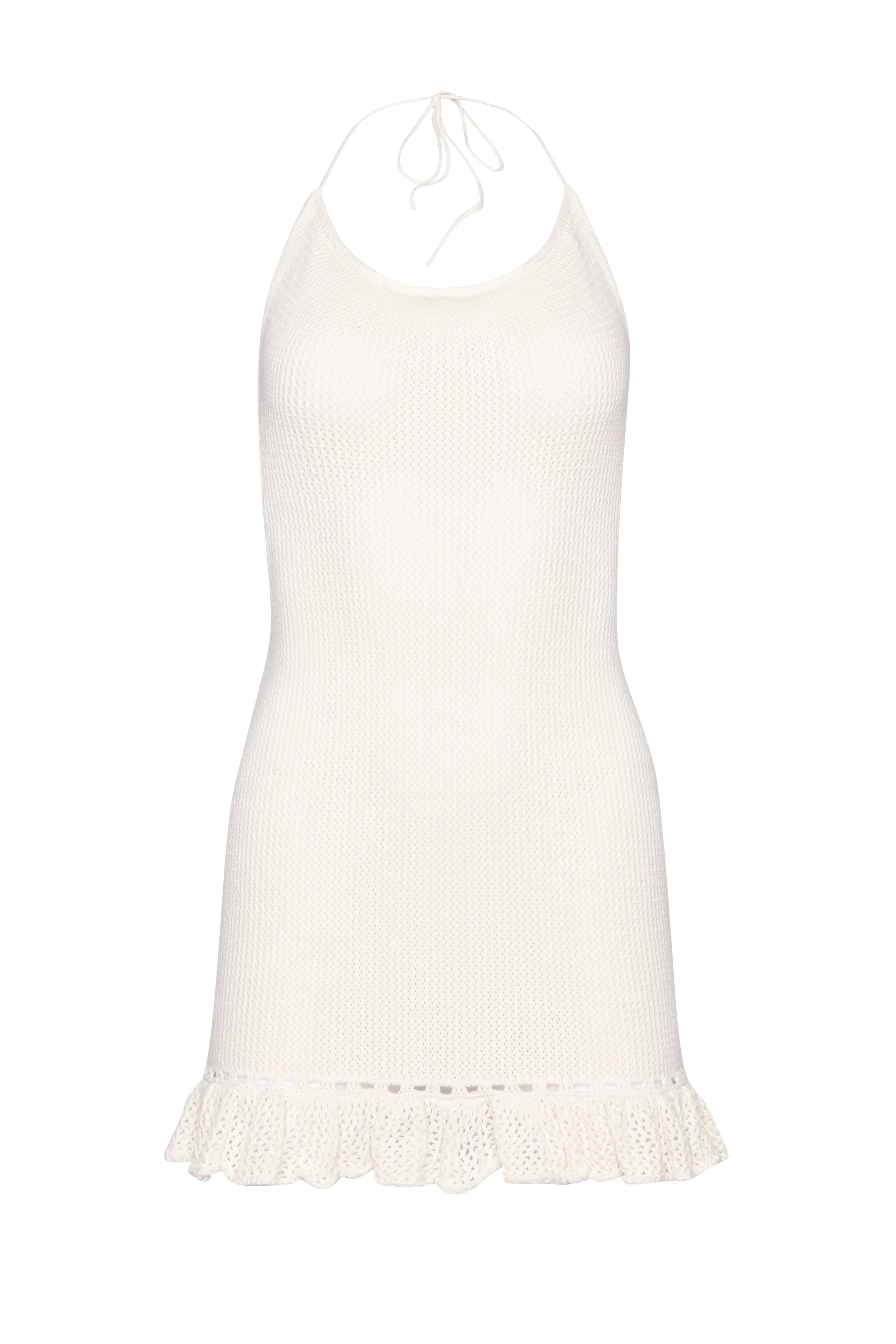 The summer staple you need: meet our Crochet Halter Mini Dress. Crocheted in stretch cotton to a compact stitch. the fitted mini silhouette features a charming ruffle hem and an open back.