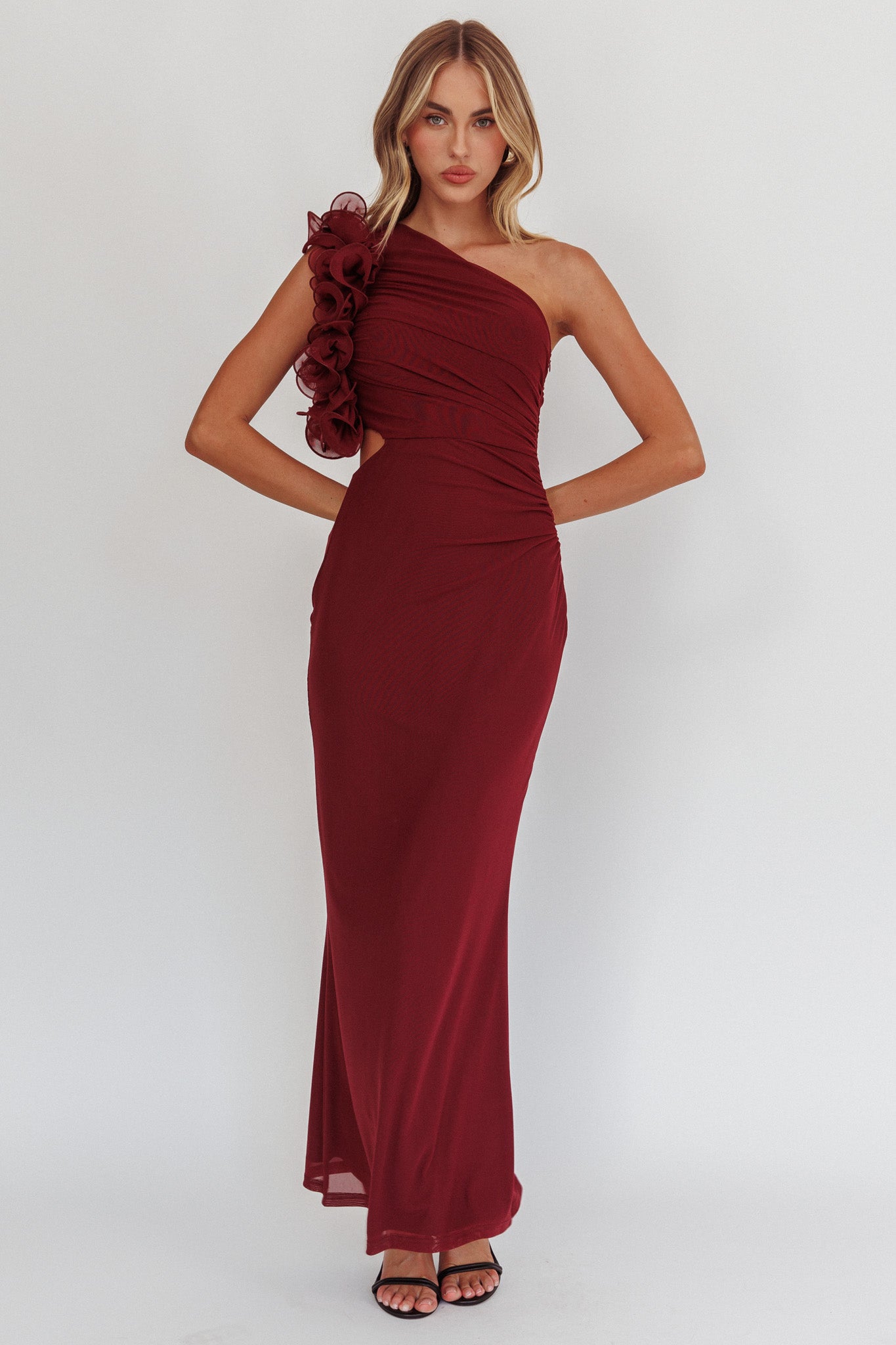 Make heads turn in our gorgeous Deanna maxi dress. It features a one-shoulder style with a pretty ruffle detail. Wear it to a wedding or special birthday dinner teamed with strappy, nude heels and a clutch for an unforgettable look.