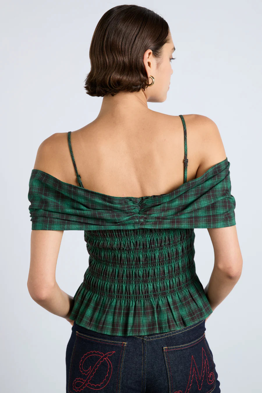 Our Elsa shirred top presents options; it can be worn as pictured or easily styled as a bandeau top by detaching its wrap detail and straps.