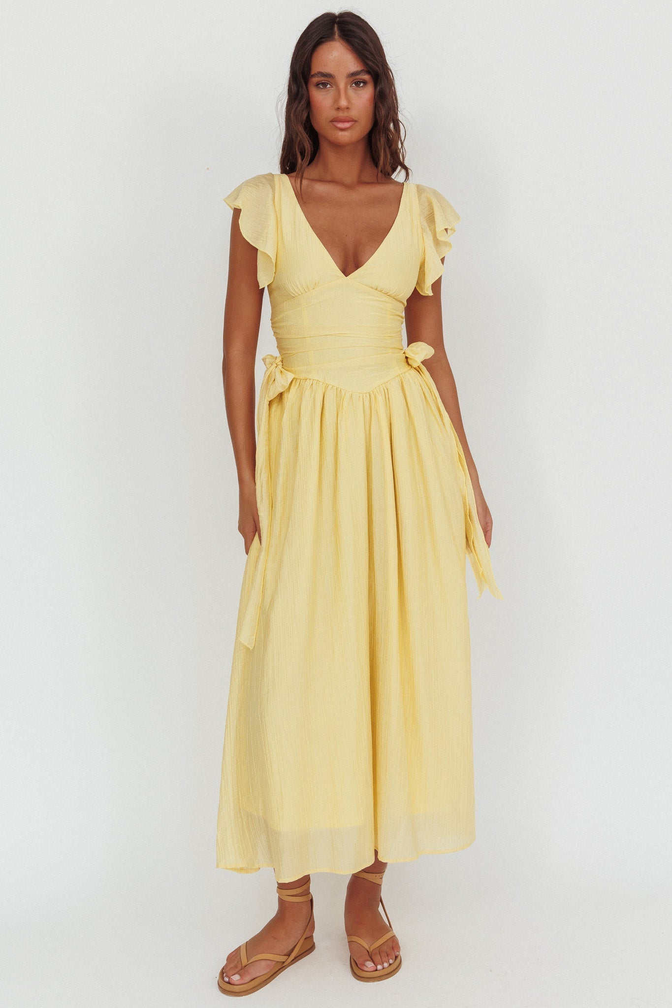 Twirl through your weekend in our gorgeous Elsewhere maxi dress. It features flutter sleeves and a scalloped lace trim and is perfect for weekend lunc dates with your girlies. Team it with a tote and slides for a chic look we are loving.