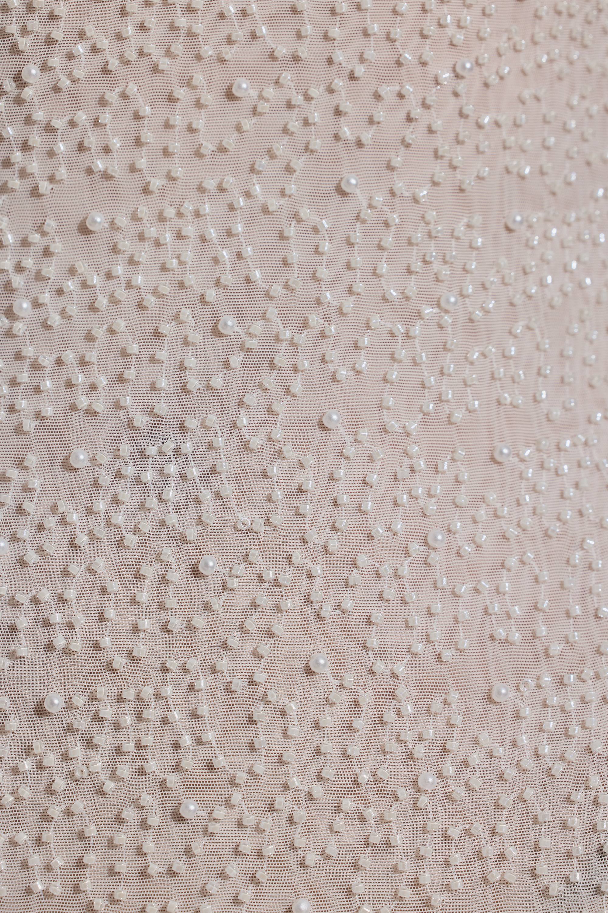 Channel effortless glamour with the Duhamel maxi dress. An iconic silhouette, it’s crafted from our premium dual-layered 20 mesh fabric with a slightly sheer finish that hugs every curve beautifully. Framed with an asymmetric neckline, it’s cut to a fishtail silhouette with a centre back split, low open back and all-over delicate hand-embellished pearls and beads for a statement look.