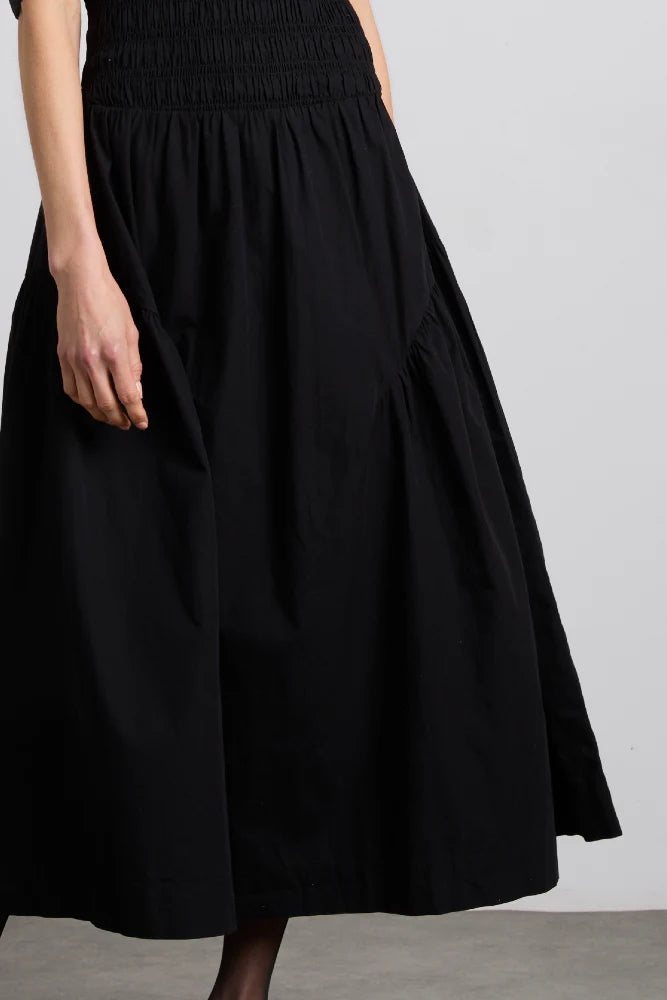 With a shirred bodice and full skirt. our Esmerelda midi dress is super flattering and easy to wear.