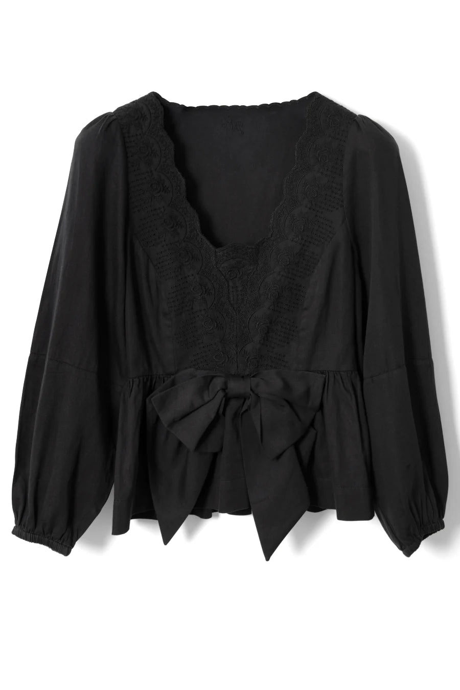 Slinky and chic. our Eugenie bow blouse can be paired back with jeans or dressed up with a skirt. depending on the occasion.