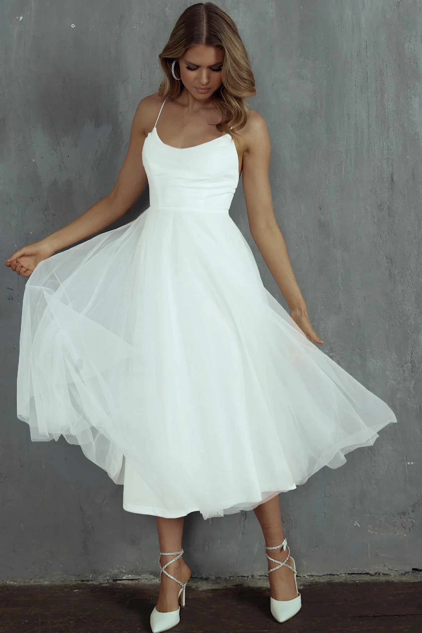 You'll be floating on Cloud 9 in our stunning Floating By midi dress. We are loving the dreamy mesh overlay and lace-up back, giving us all the princess vibes. Wear it for your bridal shower or a special birthday occasion teamed with clear heels and a clutch.