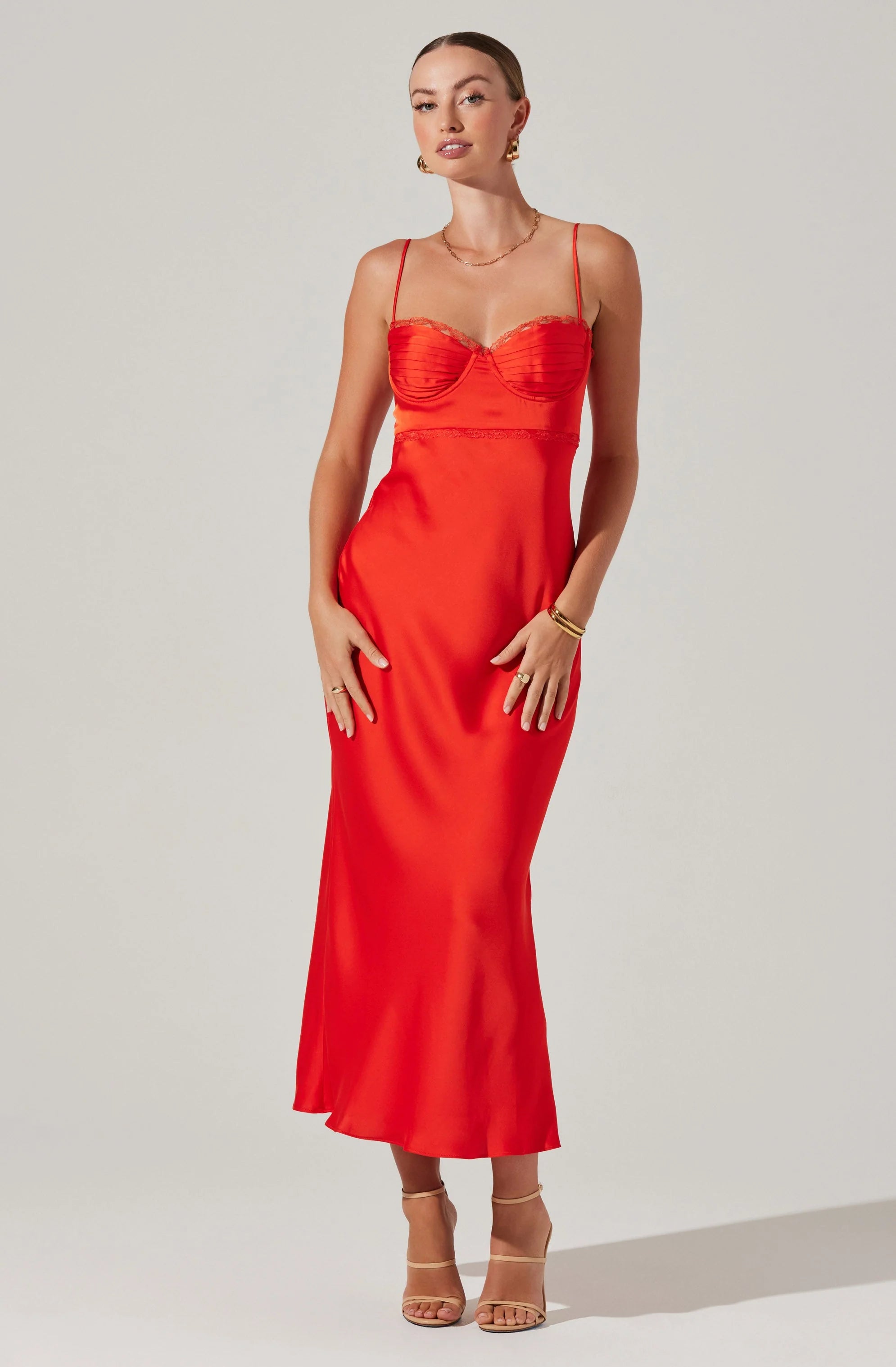 Sleek lines on this bustier maxi dress make it the perfect option for a formal wedding, bridesmaid dress or any fancy occasion.