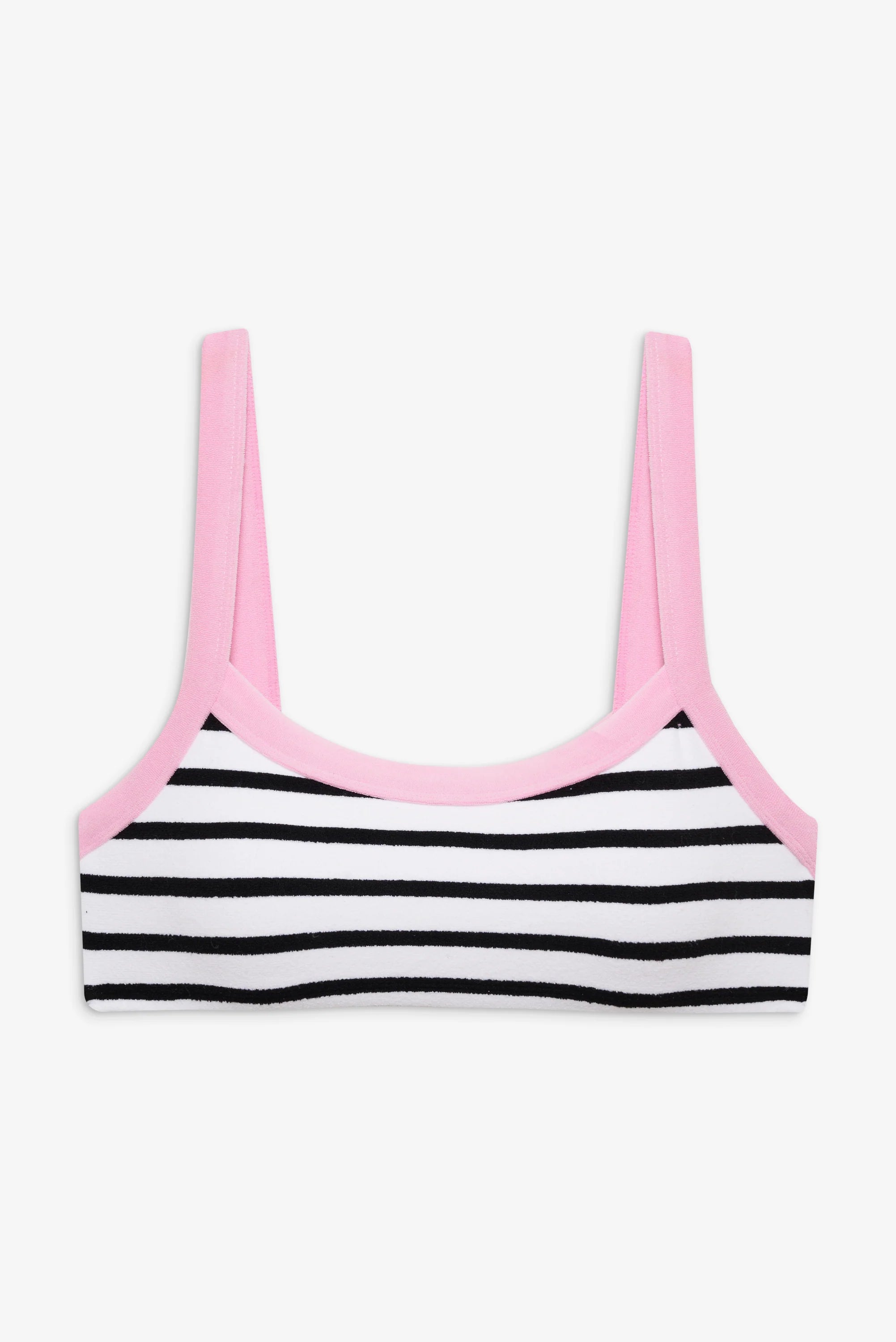 The Flynn bikini top is designed for effortless days spent in the sun. Crafted from ultra soft terry cloth fabric with a Vintage Stripe pattern. this bralette bikini top is a standout piece this season.
