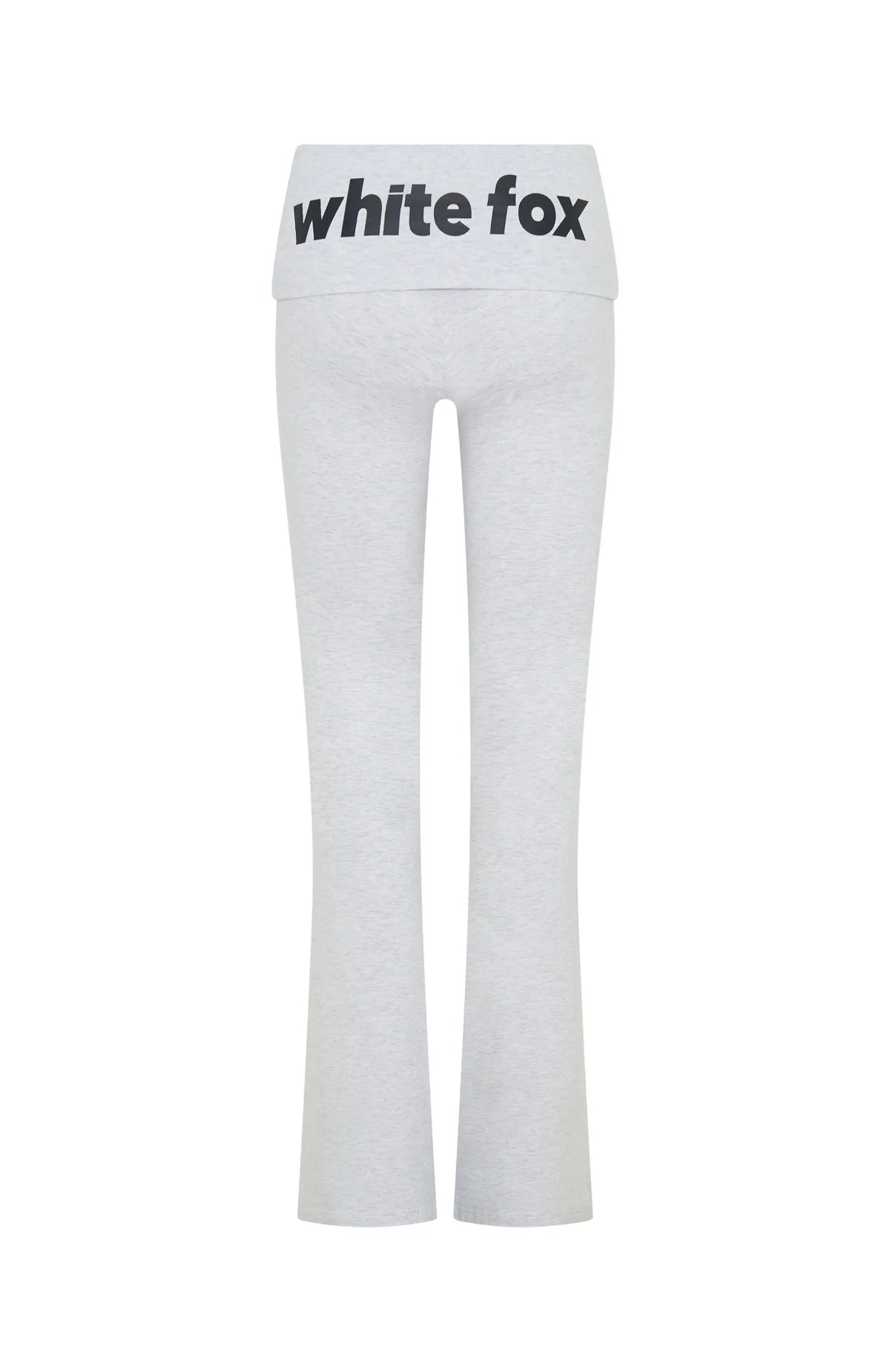 Lounge in style with the From The Archives Gigi Fold Over Flare Pants Grey Marle. Featuring a thick, elasticated fold over waistband with back logo detailing, full length, unlined material, and flare design. Team with your favourite From The Archies top in Grey Marle!