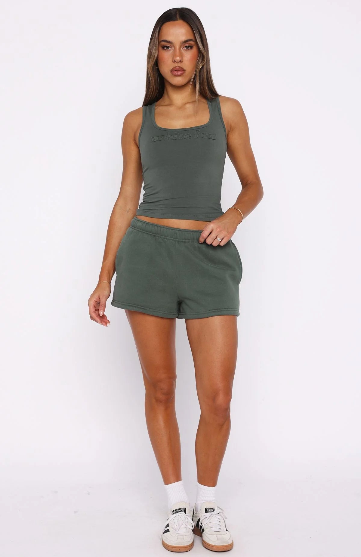 Lounge in style with the From The Archives Lexi Tank in Khaki. This tank features thick shoulders straps, low scoop neckline, and distressed White Fox text at the centre front, offering a relaxed fit perfect for everyday wear. Pair it with the matching From The Archives Lexi Lounge Shorts for a coordinated and comfortable ensemble.