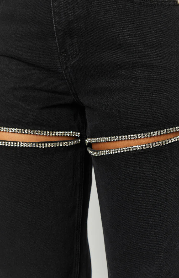 Add some sparkle to your look with our trim black denim . Perfect for a night out or a stylish day look, pair with and bold . For a more casual vibe, style them with a graphic tee and sneakers!