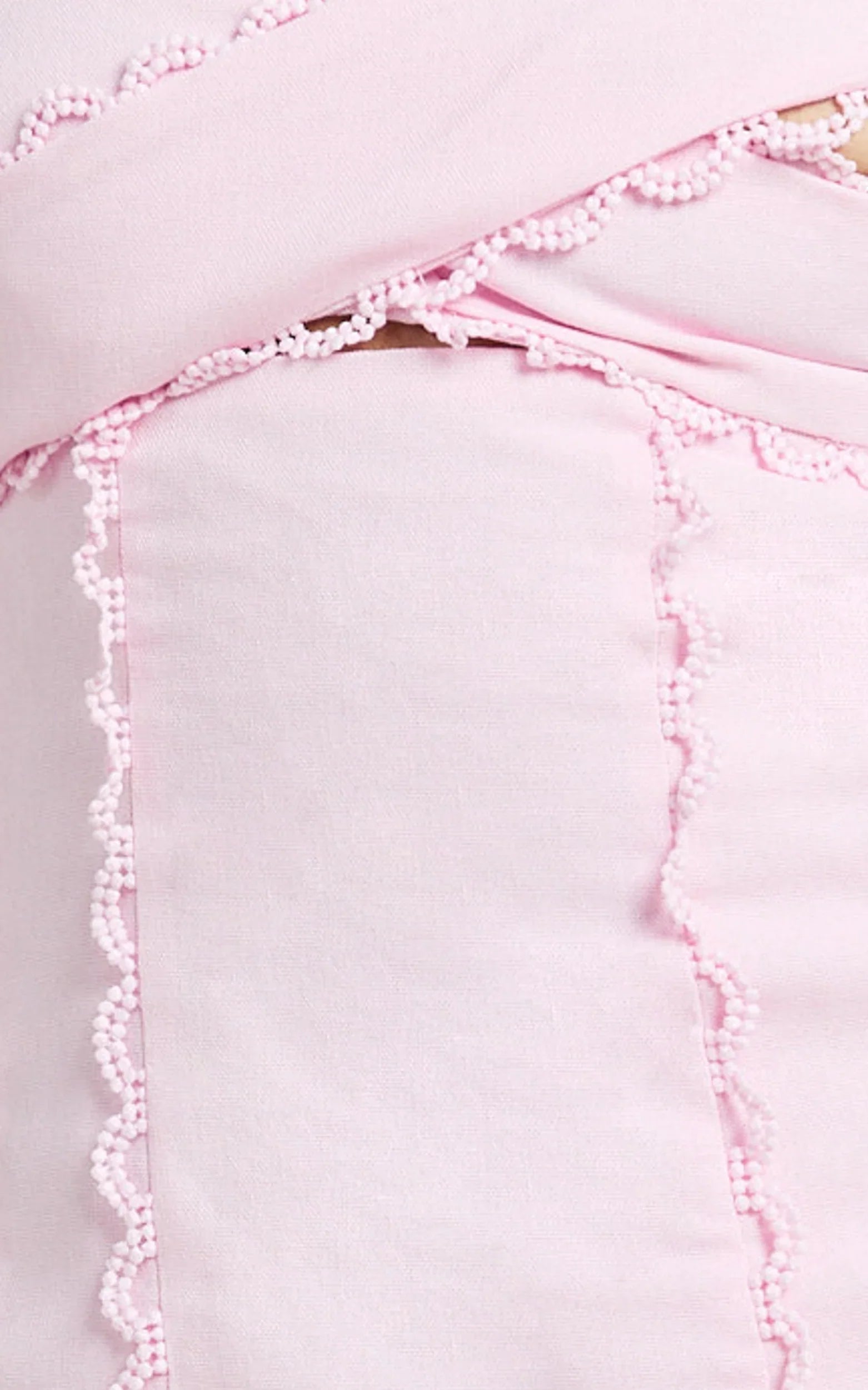 Featuring a feminine sweetheart neckline, delicate scalloped detailing, and a flirty tie-back design, this stunning pink mini perfectly captures iconic Y2K vibes with just the right touch of street-style attitude. Whether you're heading out for brunch or drinks on girls' night, this dress effortlessly blends runway-inspired romance with current trends.