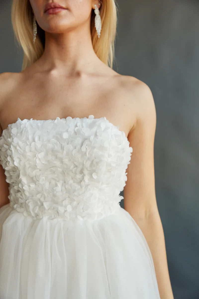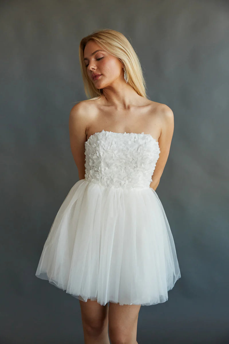 Stand out in the Grace Strapless Floral Applique Tulle Babydoll Mini Dress! Featuring gorgeous floral applique details, a tulle skirt, a straight across neckline, babydoll silhouette, and mini length, the Grace Strapless Babydoll Mini Dress is here to stun. Slip into some for a fairytale moment.