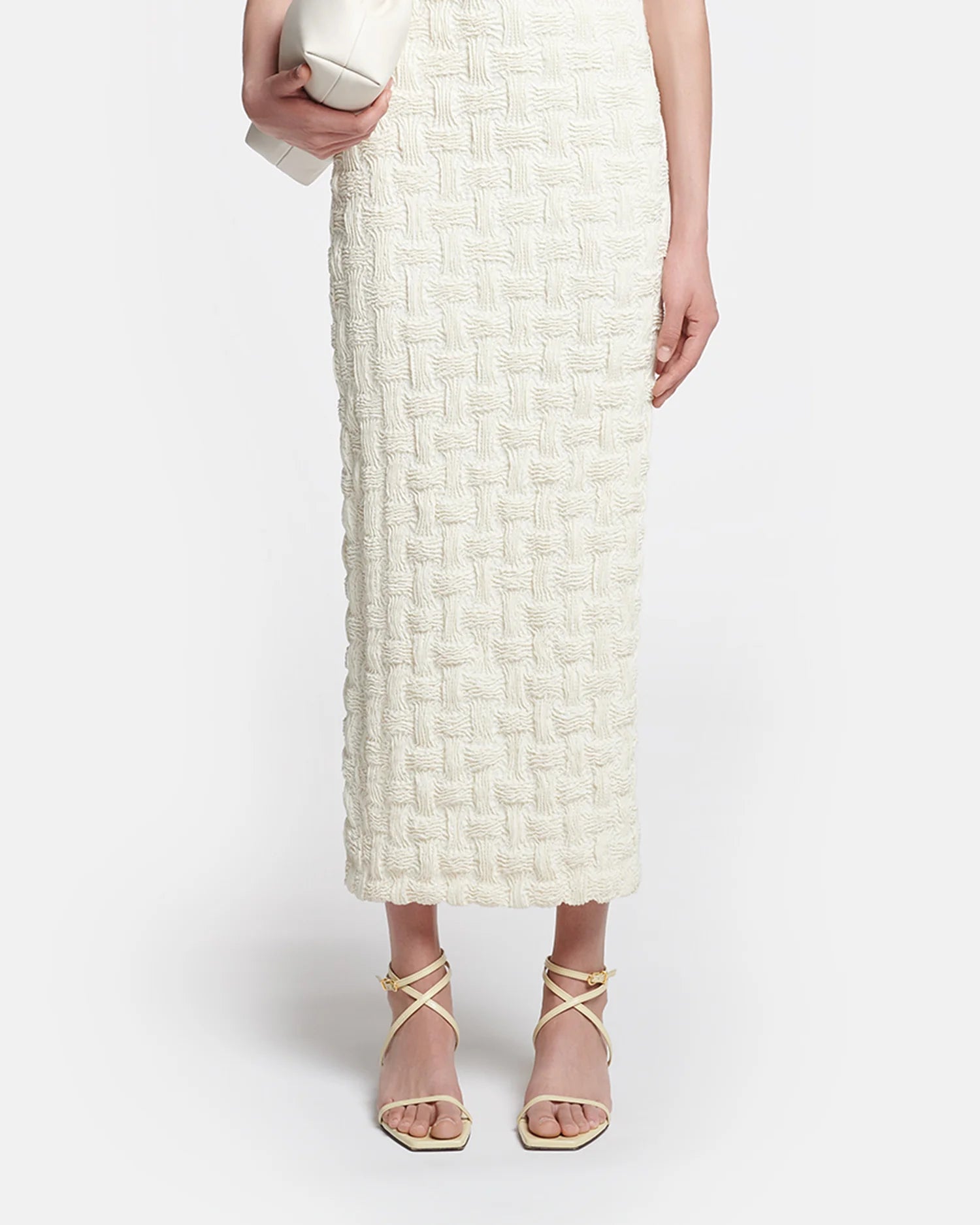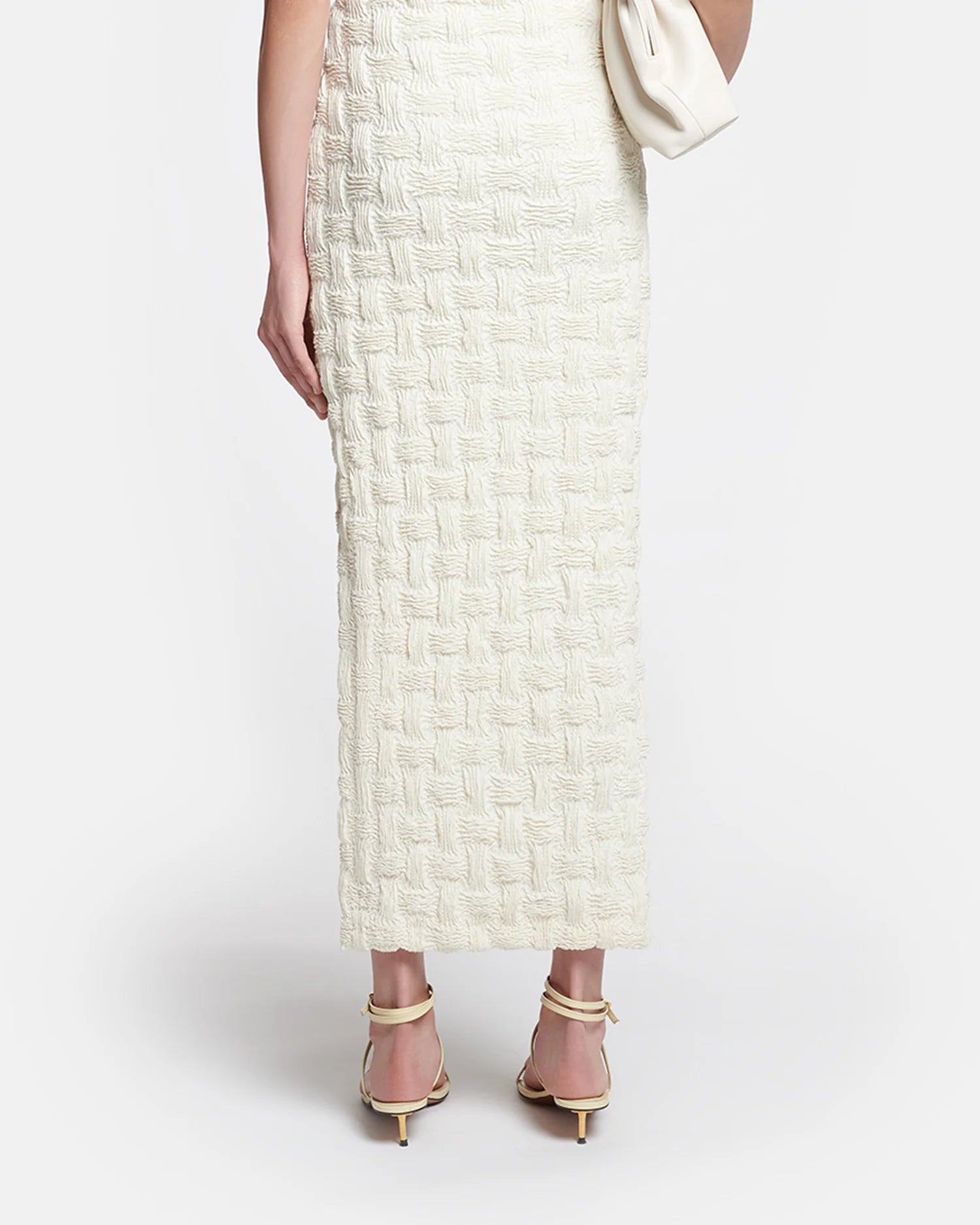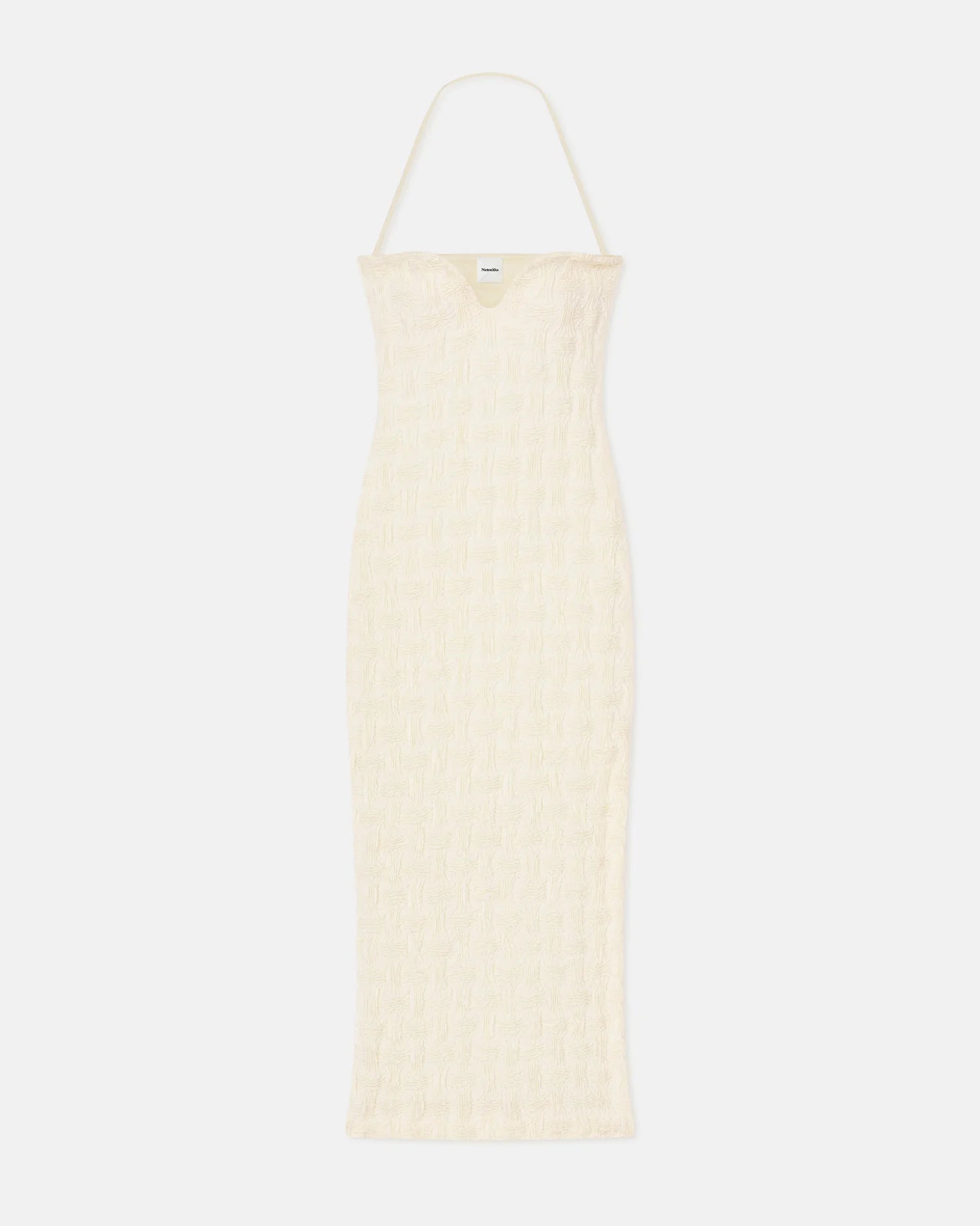 The Haylen dress demonstrates our innovative craft techniques. Boasting a new. textured fabrication. it's made from seersucker tech linen for halterneck sweetheart neckline to sculpt your frame. It falls to a midi length with a side slit.