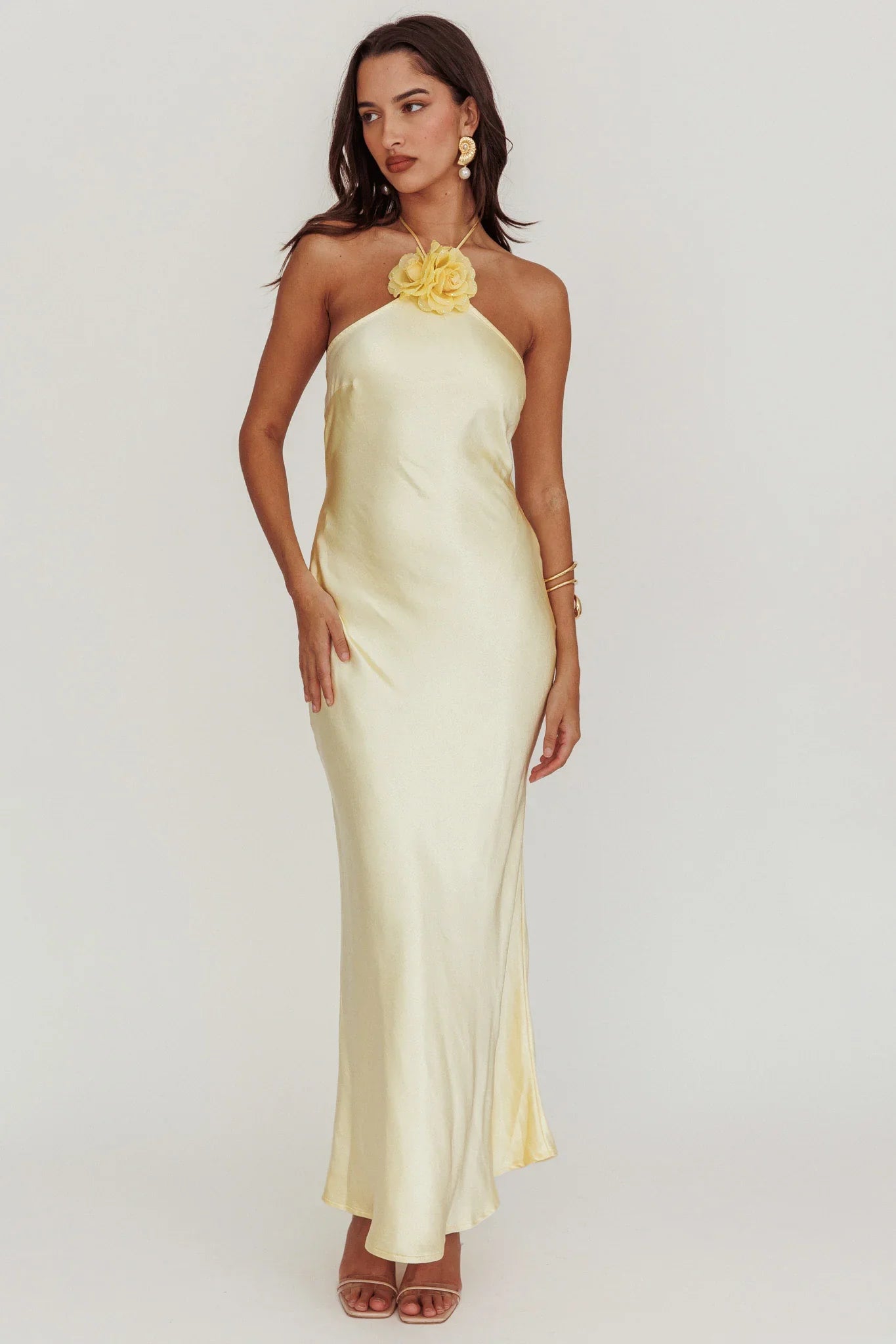 Turn up the heat in our gorgeous High Roller maxi dress. Featuring a halter neckline and detachable flower decoration. It's perfect for a wedding or special celebration! Team it with strappy heels and a satin clutch for a look that will have you flooded with compliments.