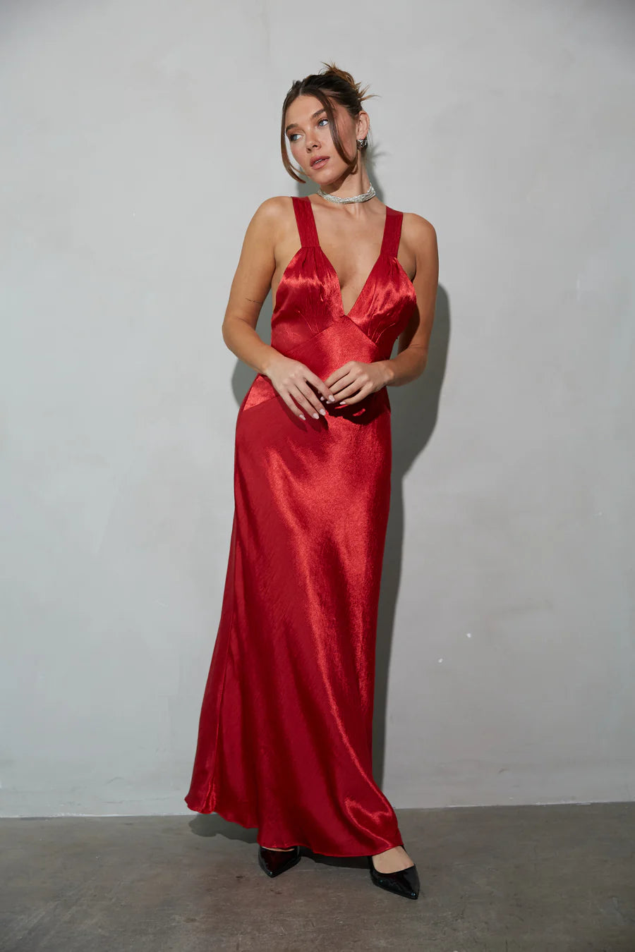 Get your acceptance speech ready fro "best-dressed" in the Illianna Open Back Satin Maxi Dress. This dramatic maxi features a sultry v-neckline, open back, and shimmery satin fabrication. Available in Ruby Red; to polish off the look.