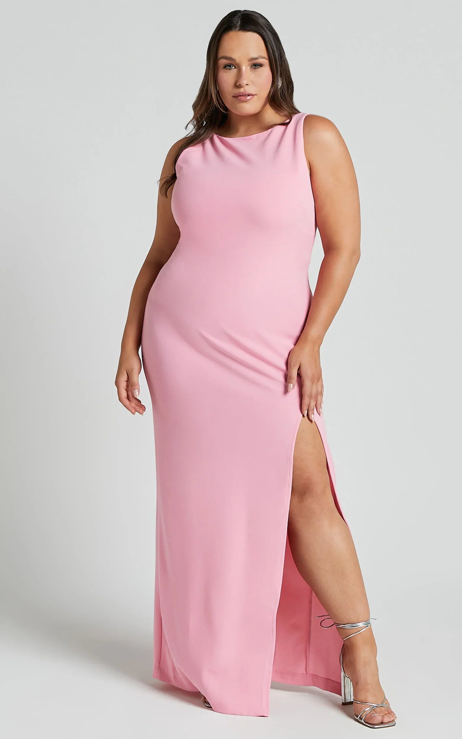 Get ready to turn heads in our Indi Maxi Dress - Boat Neck Bodycon Dress In Pink! This stunning pink dress is perfect for any occasion, whether you're attending a formal event, being a bridesmaid or simply dressing up as a wedding guest. The boat neck adds an elegant touch while the bodycon style hugs your curves in all the right places. Made from high-quality polyester, this sleeveless midi dress not only looks amazing but feels incredible too. You'll feel confident and empowered every time you slip into this gorgeous piece.