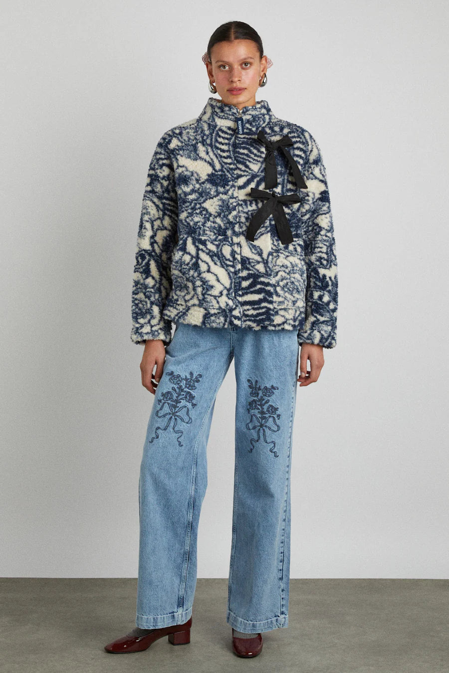 The Ingrid is a hip length borg jacket with a branded zip front closure and front placket featuring nylon tie details. With side pockets. this style fits with an oversized feel through the body.