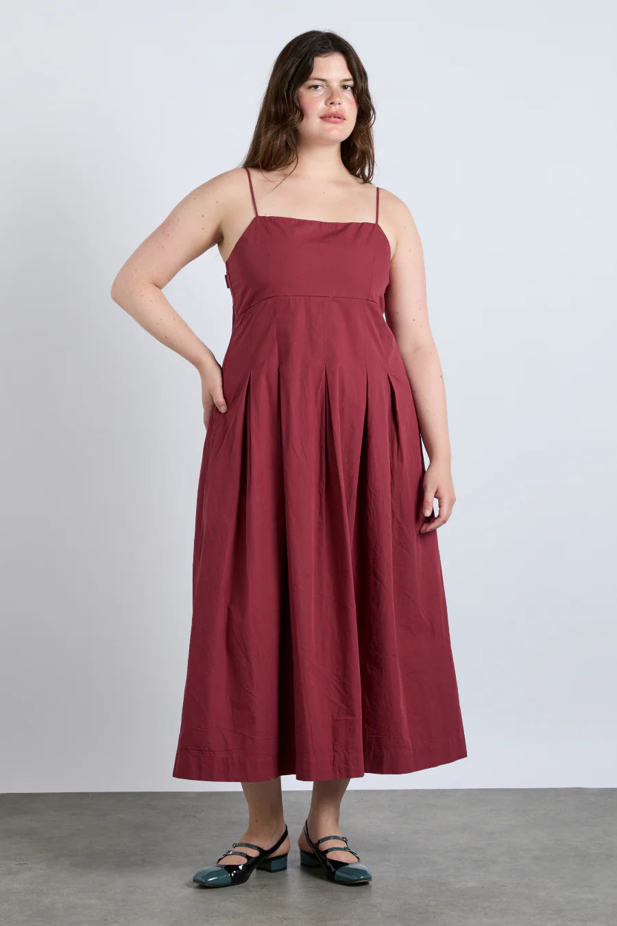 Our Iris midi dress features a dropped waist. flowing into a full. pleated skirt. Bow details add an extra pop of personality.