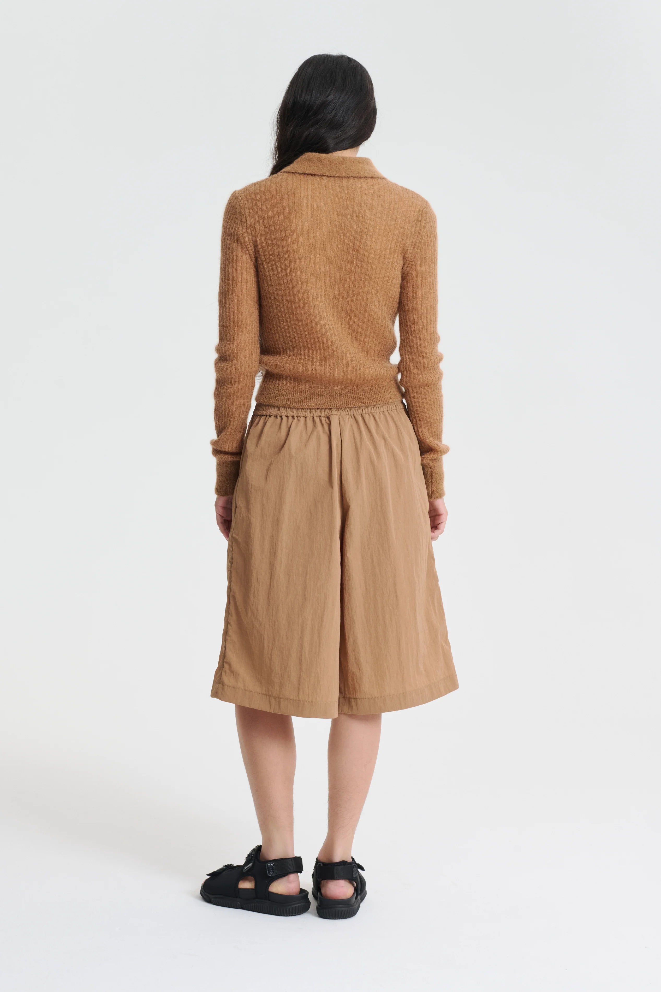 The Jaki cardigan. a transitional staple in Cecilie Bahnsenís universe. Woven from a chestnut thin mohair. a soft collar falls around the neck. while the cardigan is pulled together by bespoke buttons. Its light transparency make it ideal to layer or stand alone.