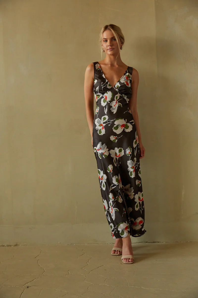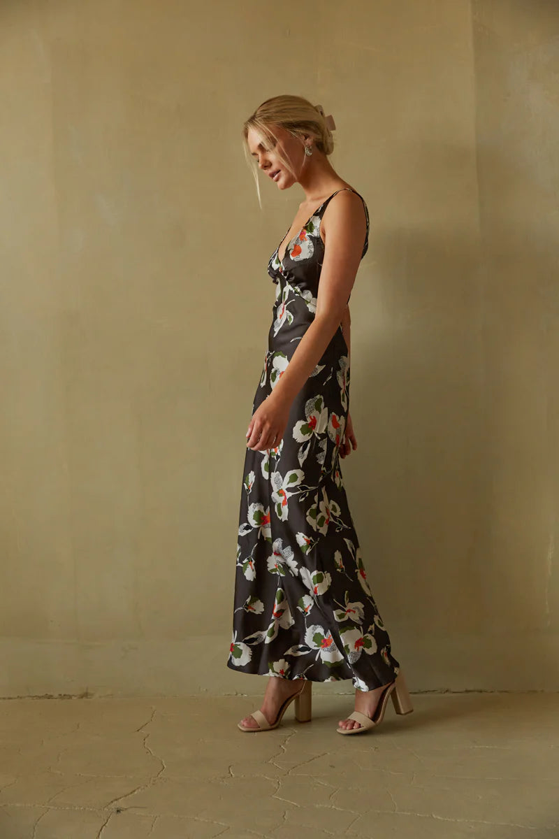 Charming everyone is easy in the Jana Satin Floral Maxi Dress! This gorgeous dress features an elegant floral print, deep v neckline and back, and an adjustable tie around the waist. Pair with with your favorite to complete the look!