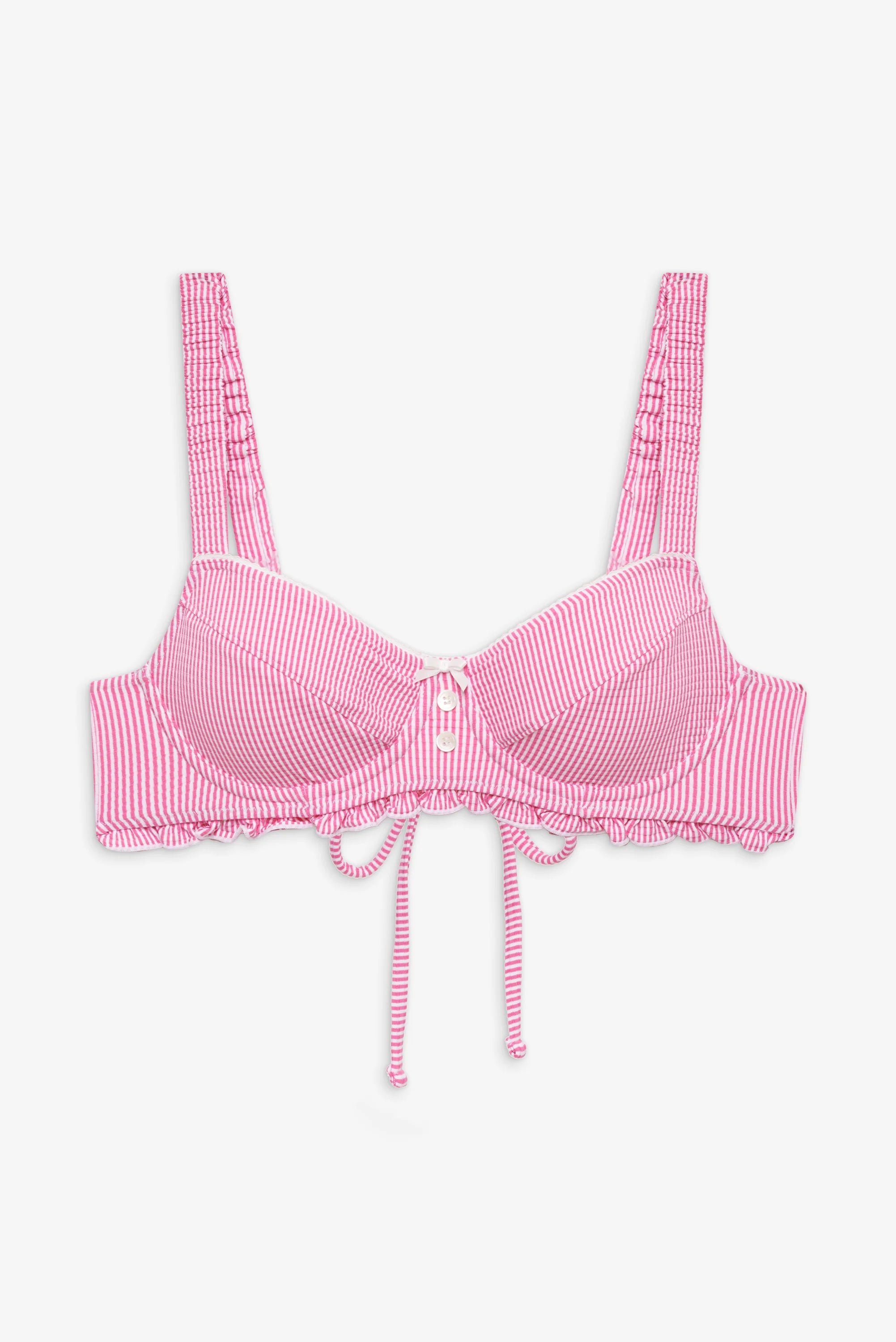 Jane is the sweetest bikini top we've designed all season. Featuring ruched elastic straps and an adjustable back tie. you'll feel both comfortable and sexy wherever you wear her.
