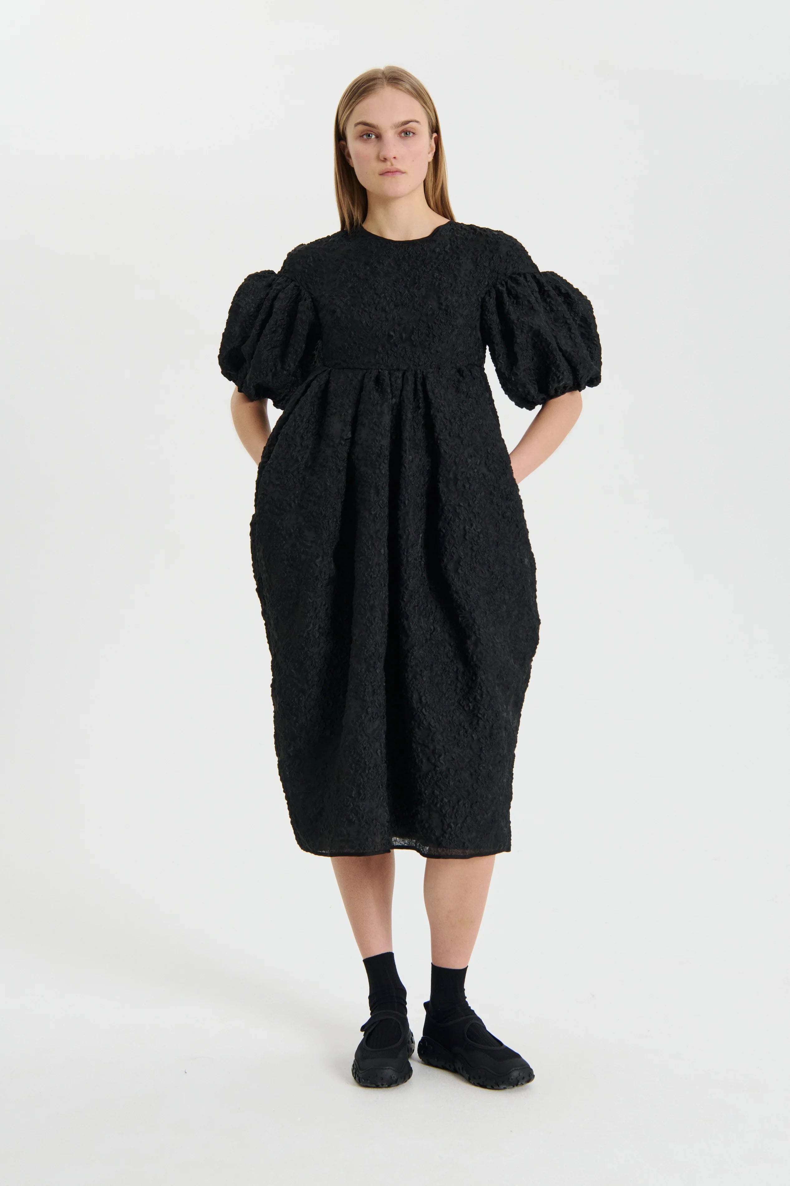 The ultra-feminine Jeanne dress is crafted in an ethereal grasmere matelassÈ. The lightweight yet elegant silhouette features a voluminous floating length. bracelet sleeves. and a tulip skirt enclosed with delicate bow ties down the back.