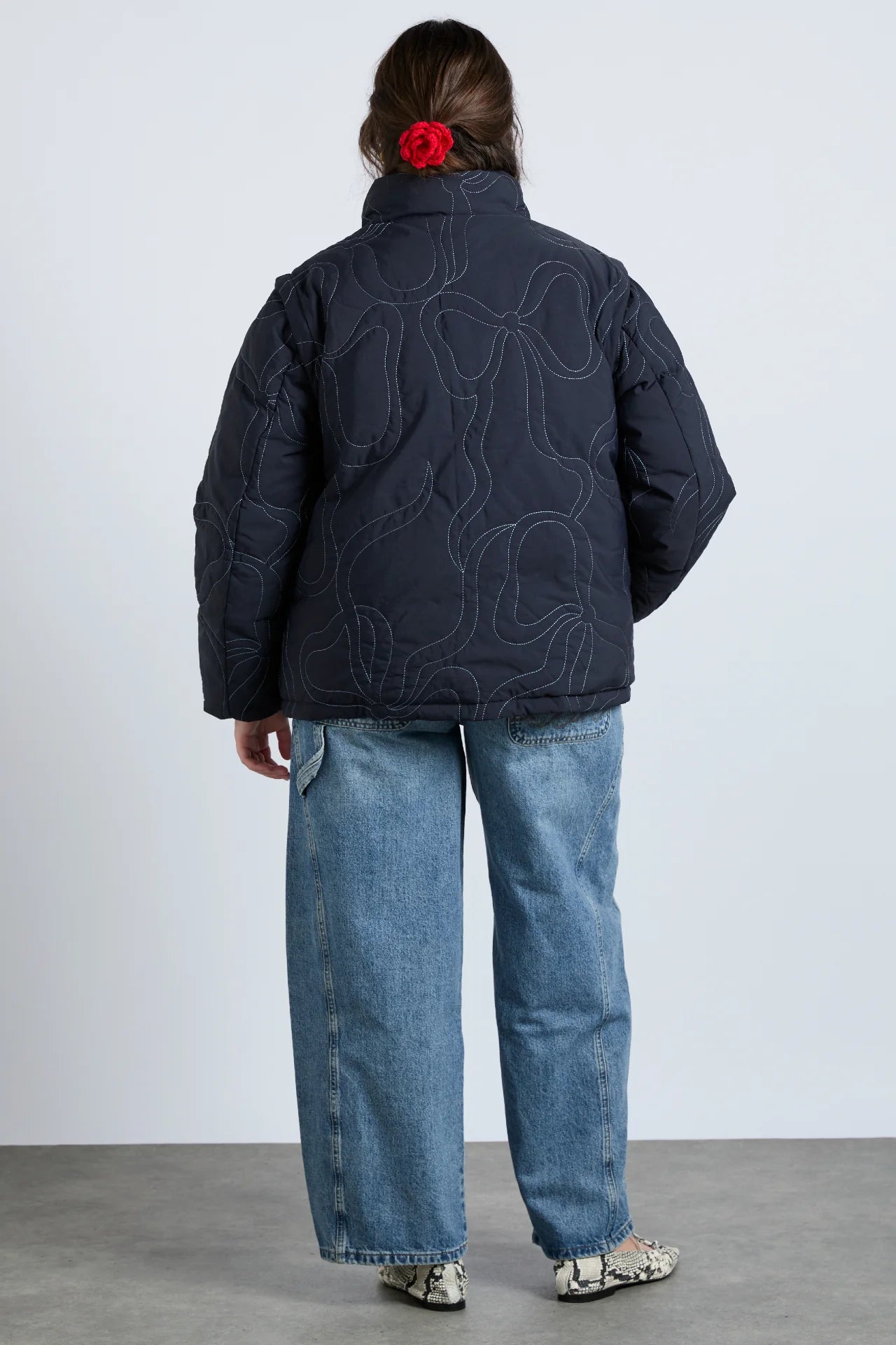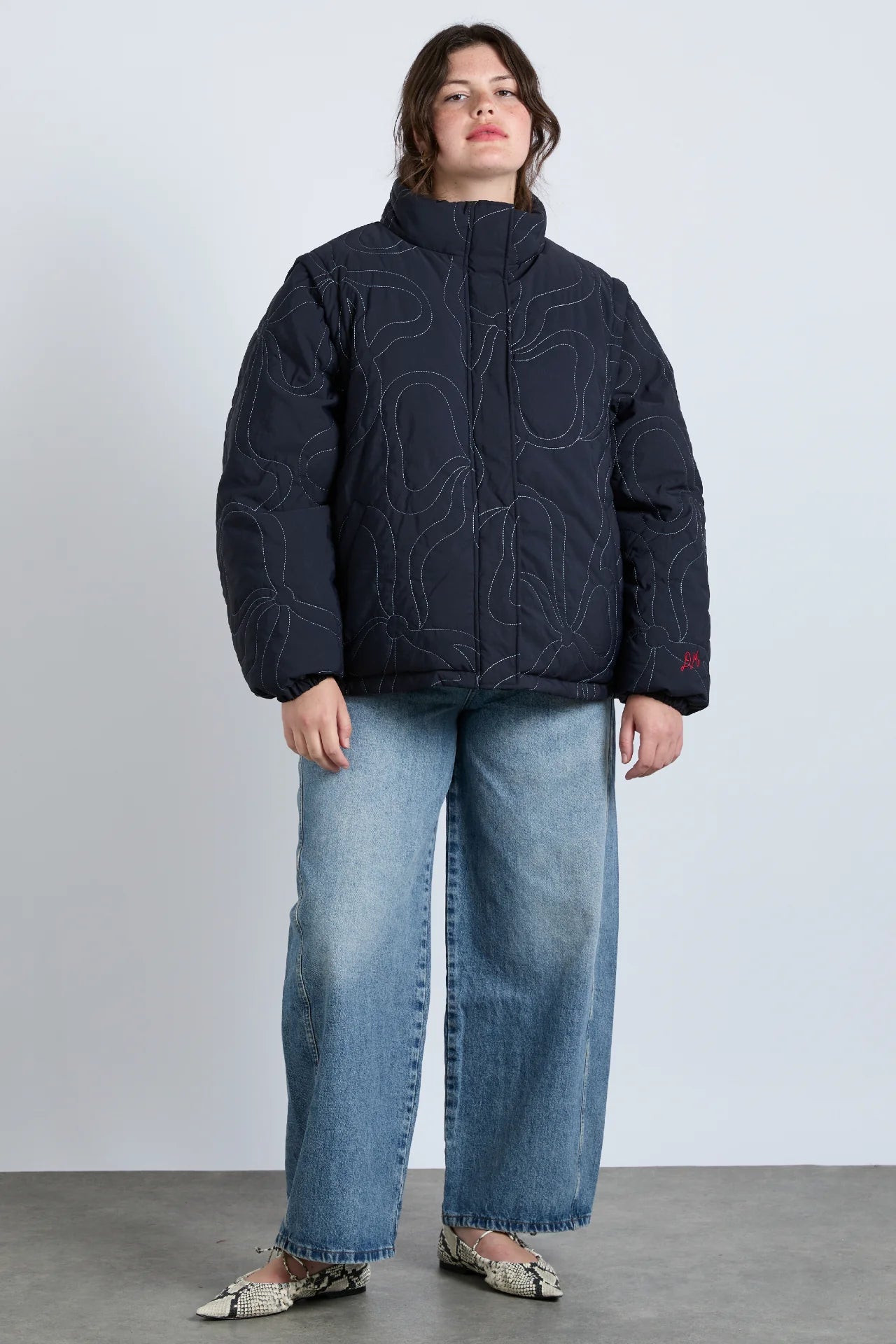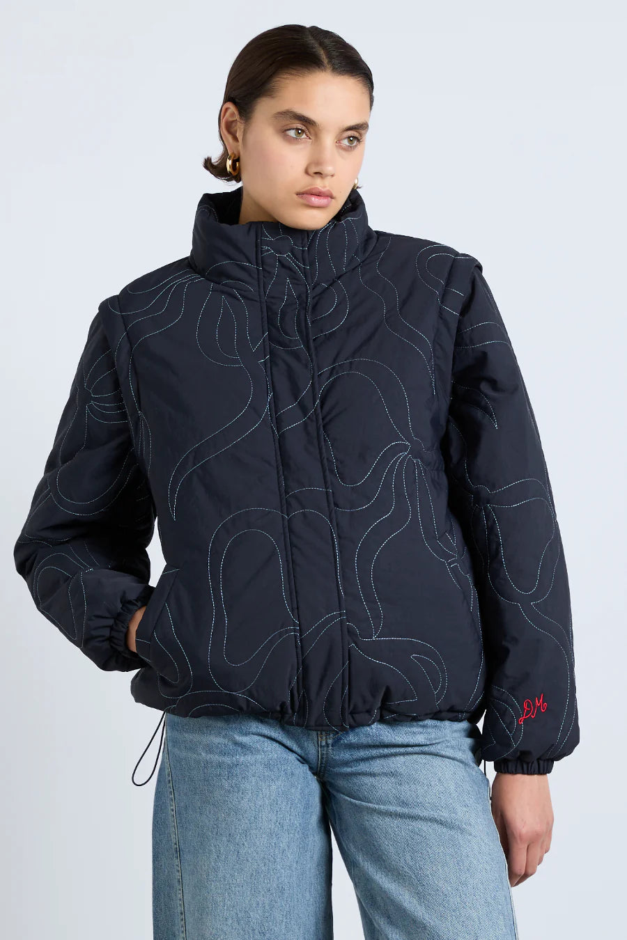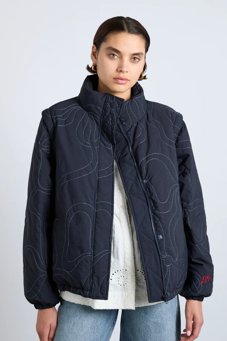 Removable sleeves and meticulous embroidery offer our Jennifer puffer a distinctive spin. It's perfect for pending cooler climes.